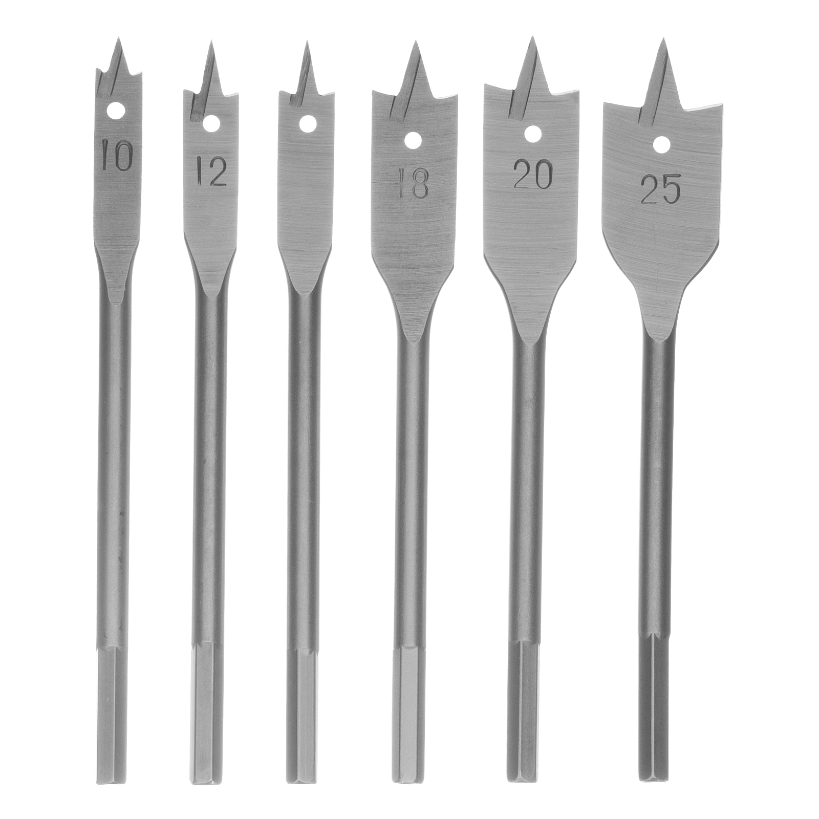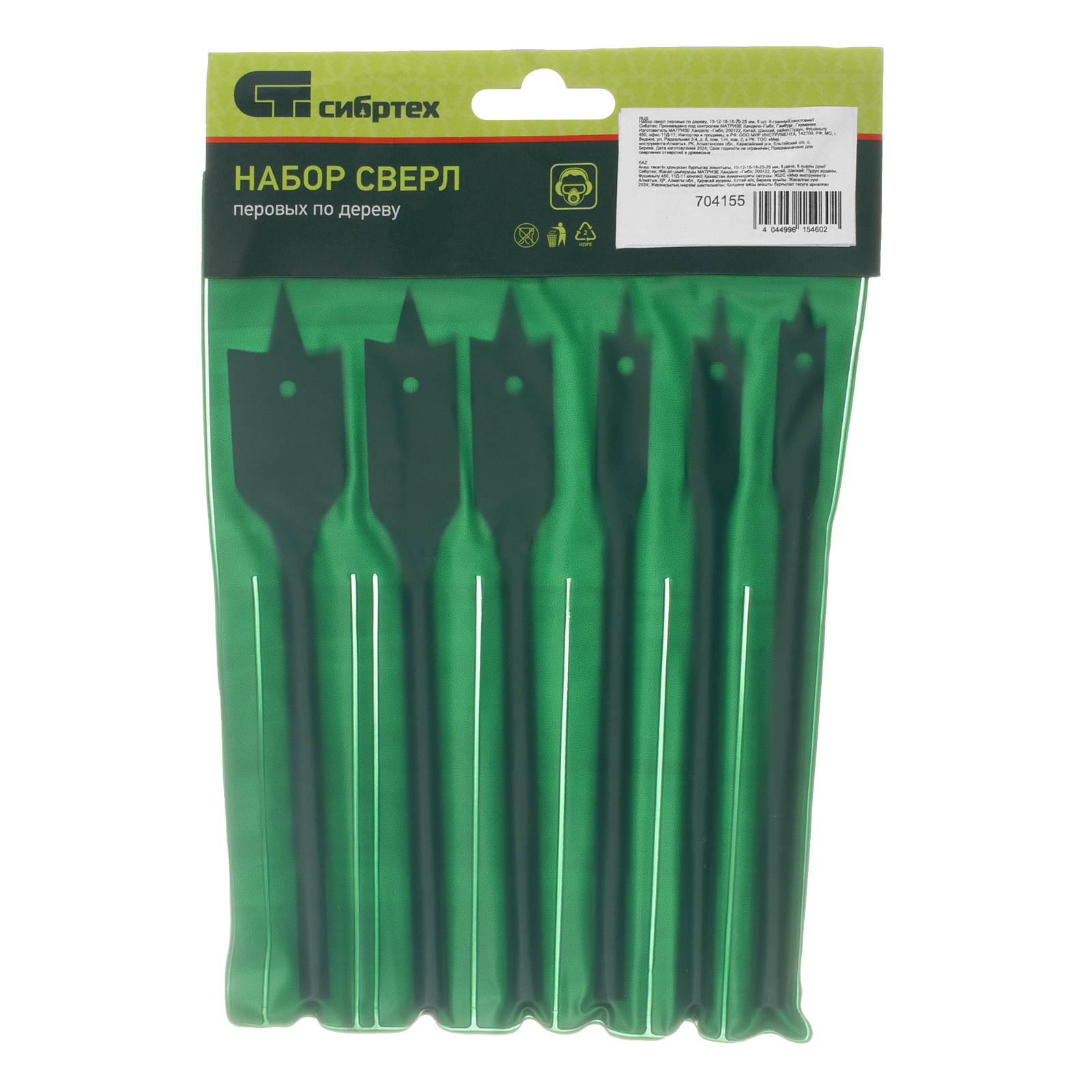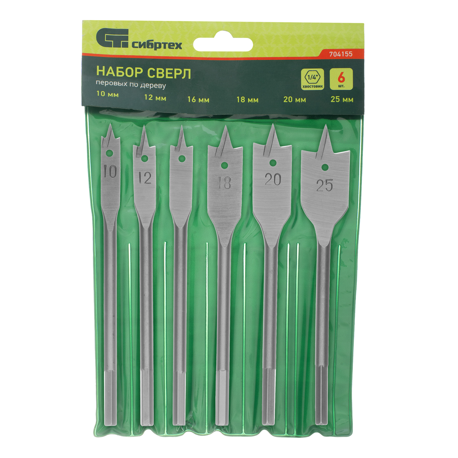 Набор Сибртех 704155 состоит из 6 перовых сверл по дереву размером 10-12-16-18-20-25 мм, с 6-гранным хвостовиком, используемых для получения глубоких сквозных отверстий в древесине. Ими также можно сверлить глухие отверстия, если нет строгих требований к форме их дна. Точное позиционирование сверл обеспечивают центральные шипы. Набор включает инструменты самых распространенных размеров и пригодится для сборки деревянных конструкций.