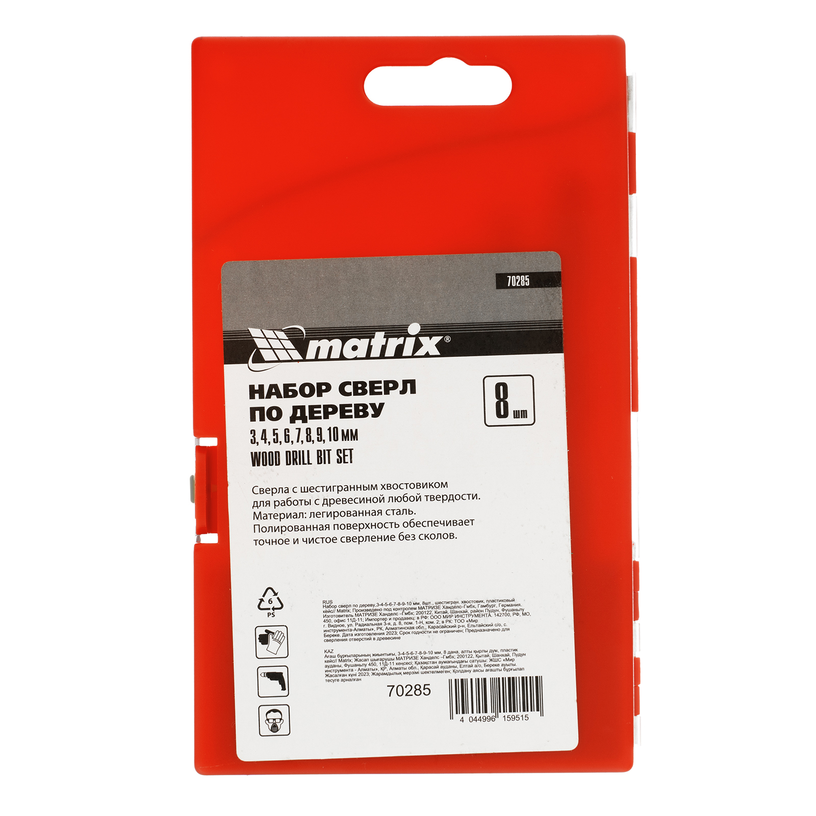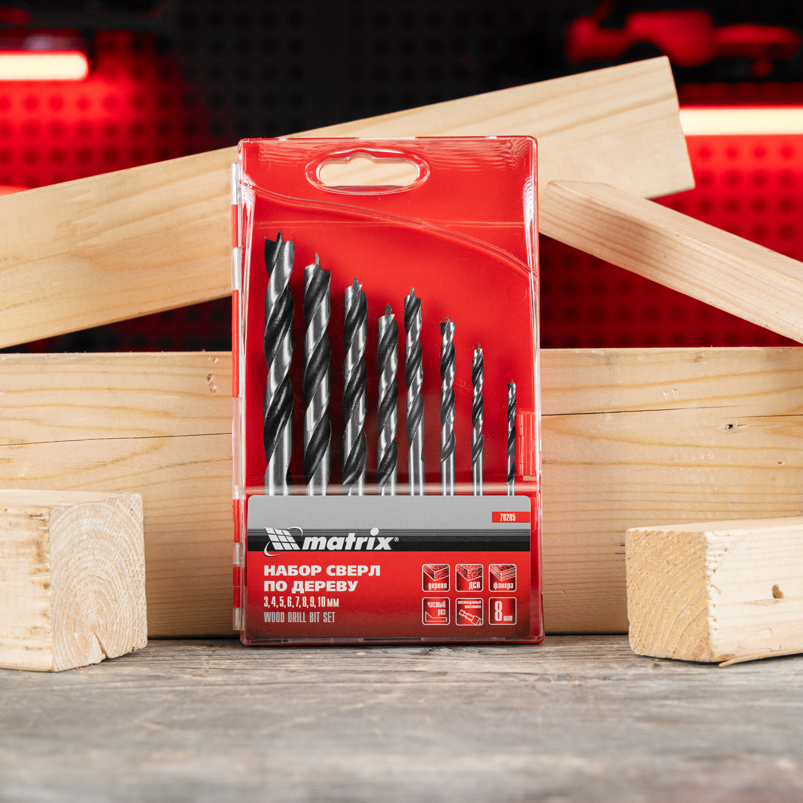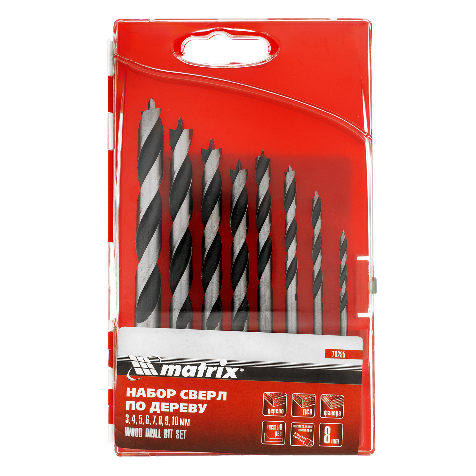 Набор сверл по дереву Matrix 70285 с шестигранным хвостовиком, 8 шт. в упаковке, позволяет получать отверстия диаметром 3-4-5-6-7-8-9-10 мм в древесине любой твердости. Используется во время ремонтных, отделочных и строительных работ, рассчитан на интенсивное профессиональное использование.