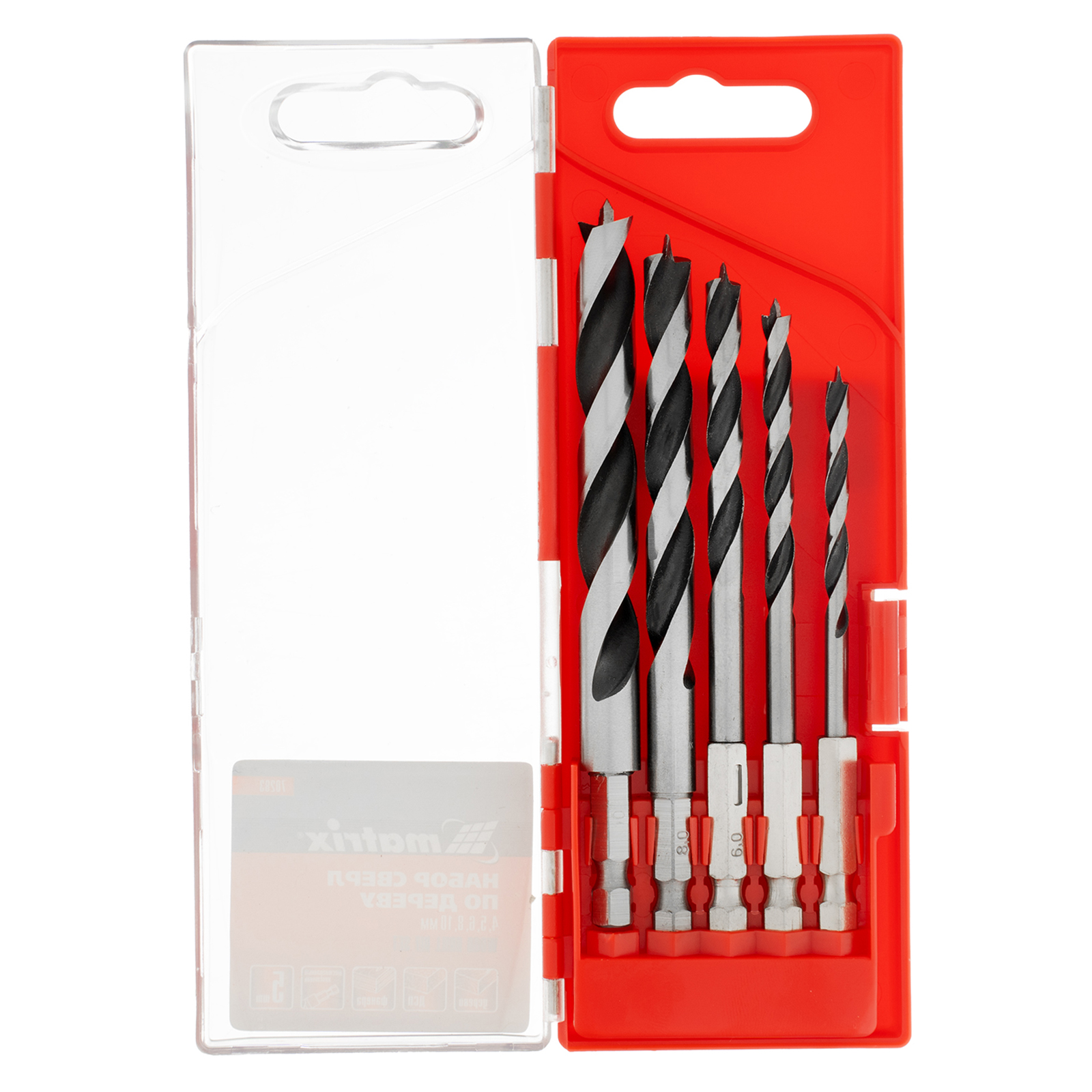 Набор сверл по дереву Matrix 70283 с шестигранным хвостовиком, 5 шт. в упаковке, позволяет получать отверстия диаметром 4-5-6-8-10 мм в древесине любой твердости. Используется во время ремонтных, отделочных и строительных работ, рассчитан на интенсивное профессиональное использование.