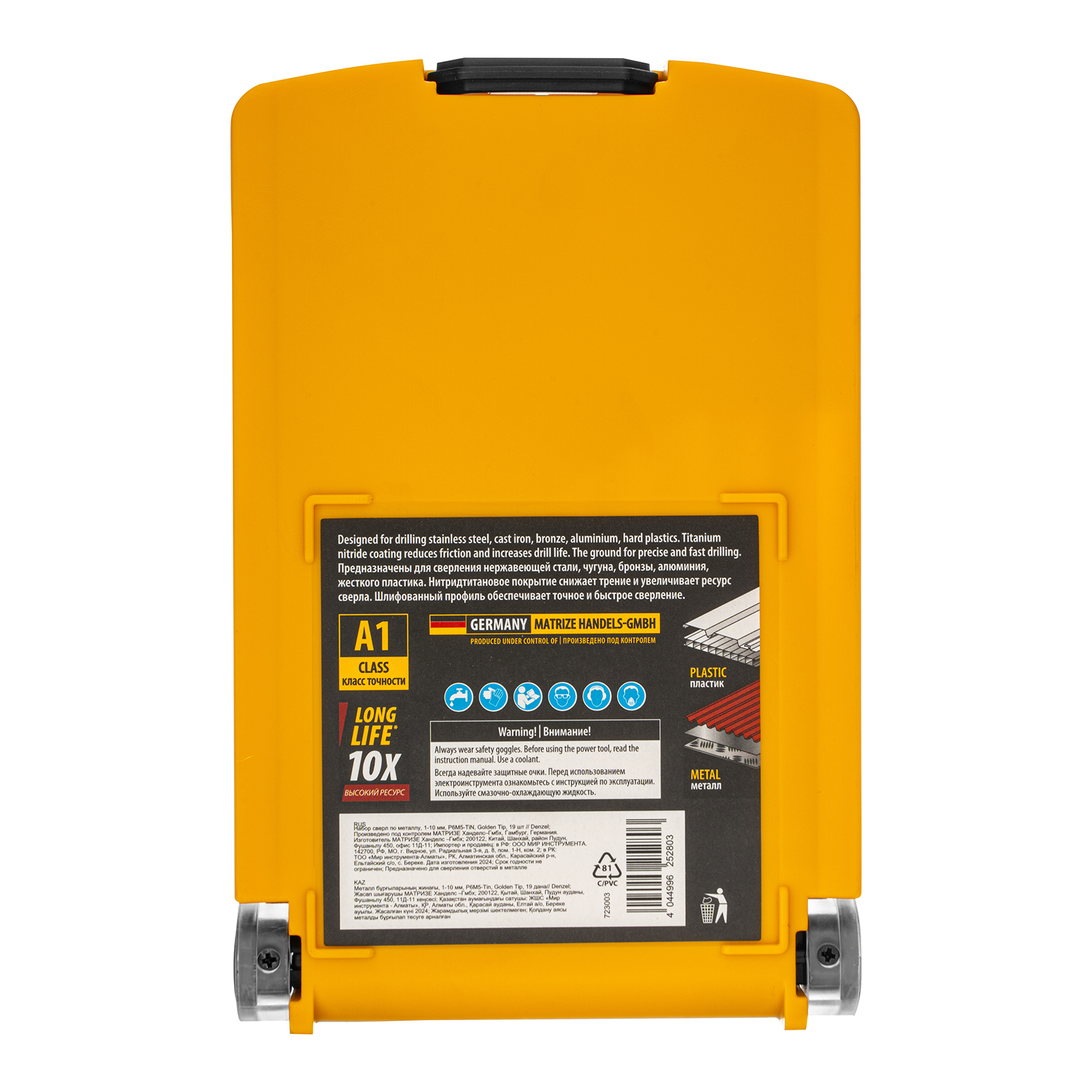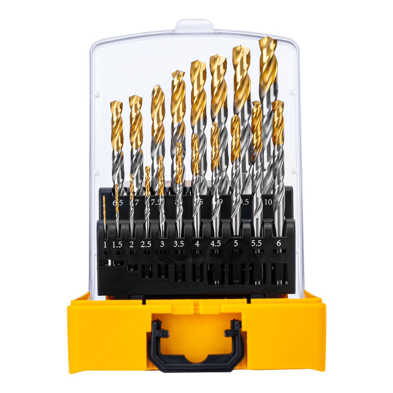 Набор Denzel Golden Tip 723003 состоит из 19 сверл по металлу диаметром 1-10 мм, изготовленных из стали P6M5. Угол заточки составляет 135°, что позволяет получать чистые и ровные отверстия в нержавеющей стали, чугуне, бронзе, алюминии, а также жестком пластике. Сверлам присвоен класс точности A1, что гарантирует высокое качество выполняемых работ. Оснастка характеризуется пониженным коэффициентом трения, что облегчает сверление и улучшает отвод стружки. Набор будет полезен дома и в мастерской.