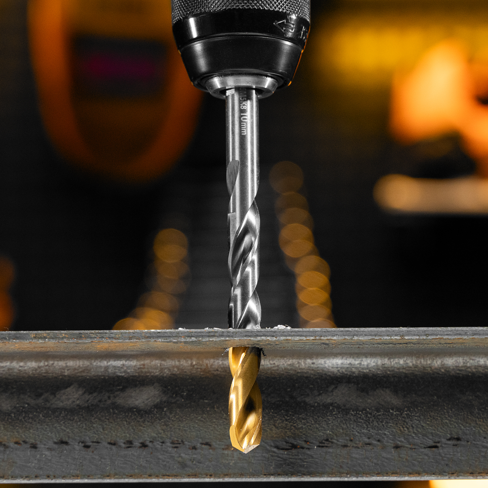 - Высокий ресурс — нитридтитановое покрытие уменьшает трение и увеличивает стойкость сверл к нагреву и износу.