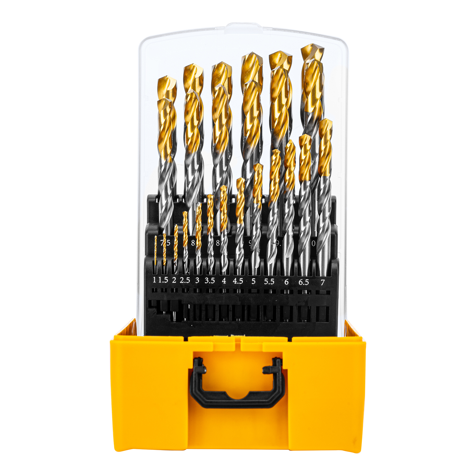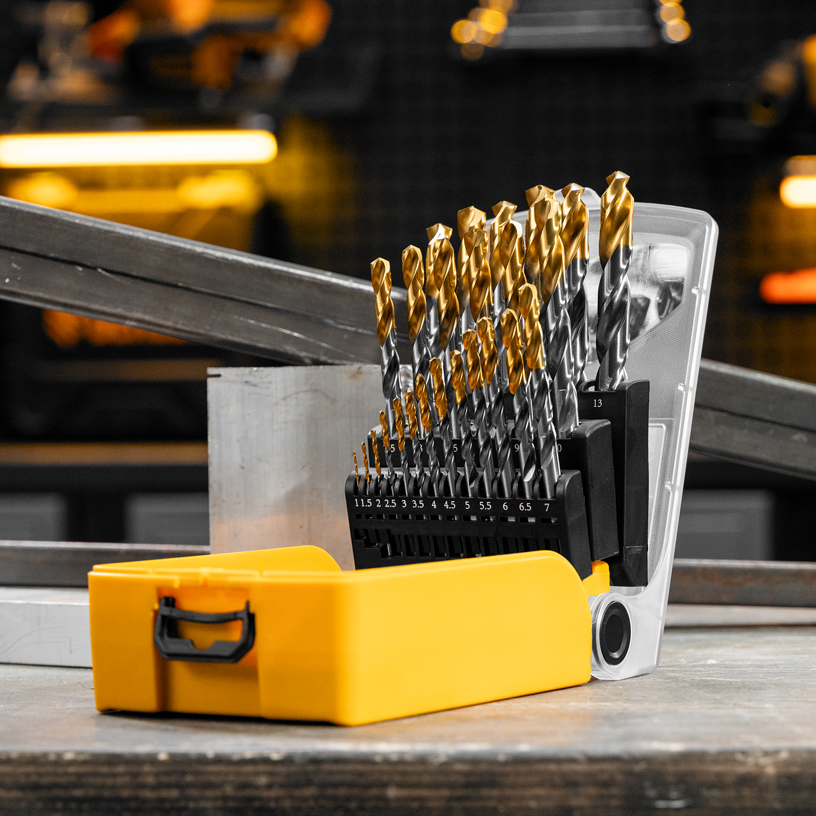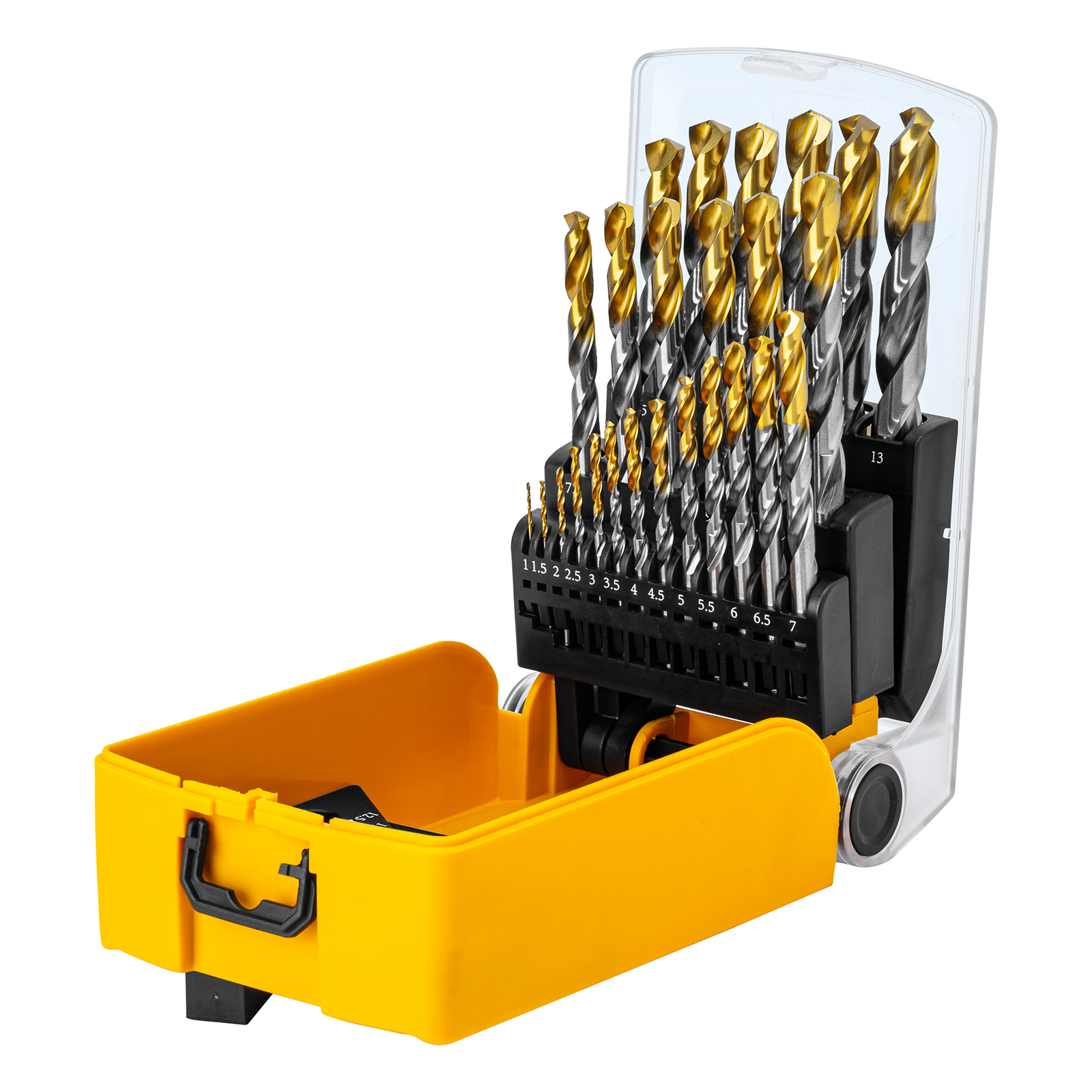 Набор Denzel Golden Tip 723009 состоит из 25 сверл по металлу диаметром 1-13 мм, изготовленных из стали P6M5. Угол заточки составляет 135°, что позволяет получать чистые и ровные отверстия в нержавеющей стали, чугуне, бронзе, алюминии, а также жестком пластике. Сверлам присвоен класс точности A1, что гарантирует высокое качество выполняемых работ. Оснастка характеризуется пониженным коэффициентом трения, что облегчает сверление и улучшает отвод стружки. Набор будет полезен дома и в мастерской.