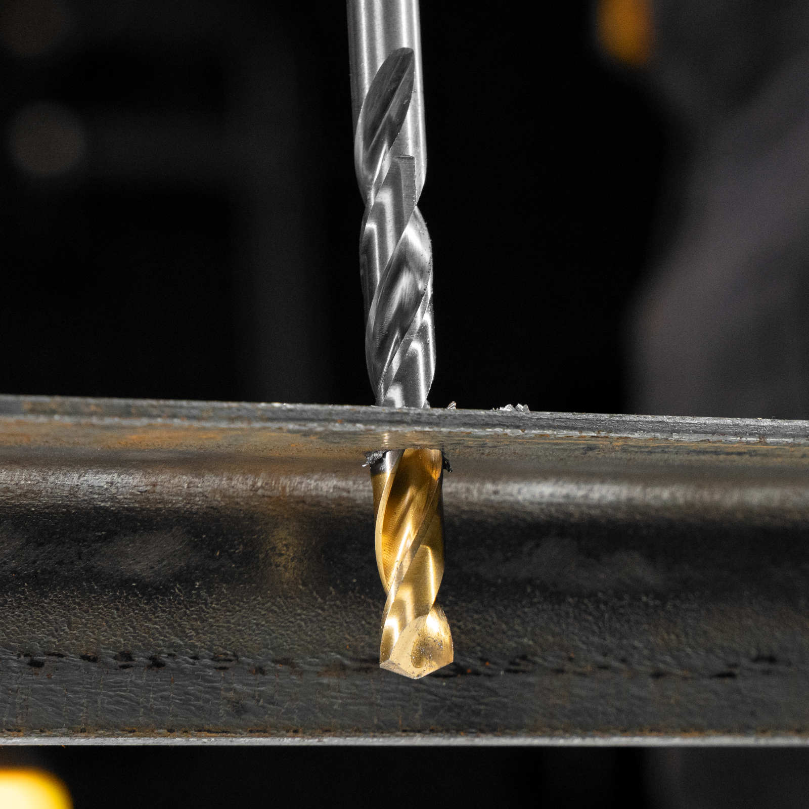- Высокий ресурс — нитридтитановое покрытие уменьшает трение и увеличивает стойкость сверл к нагреву и износу.