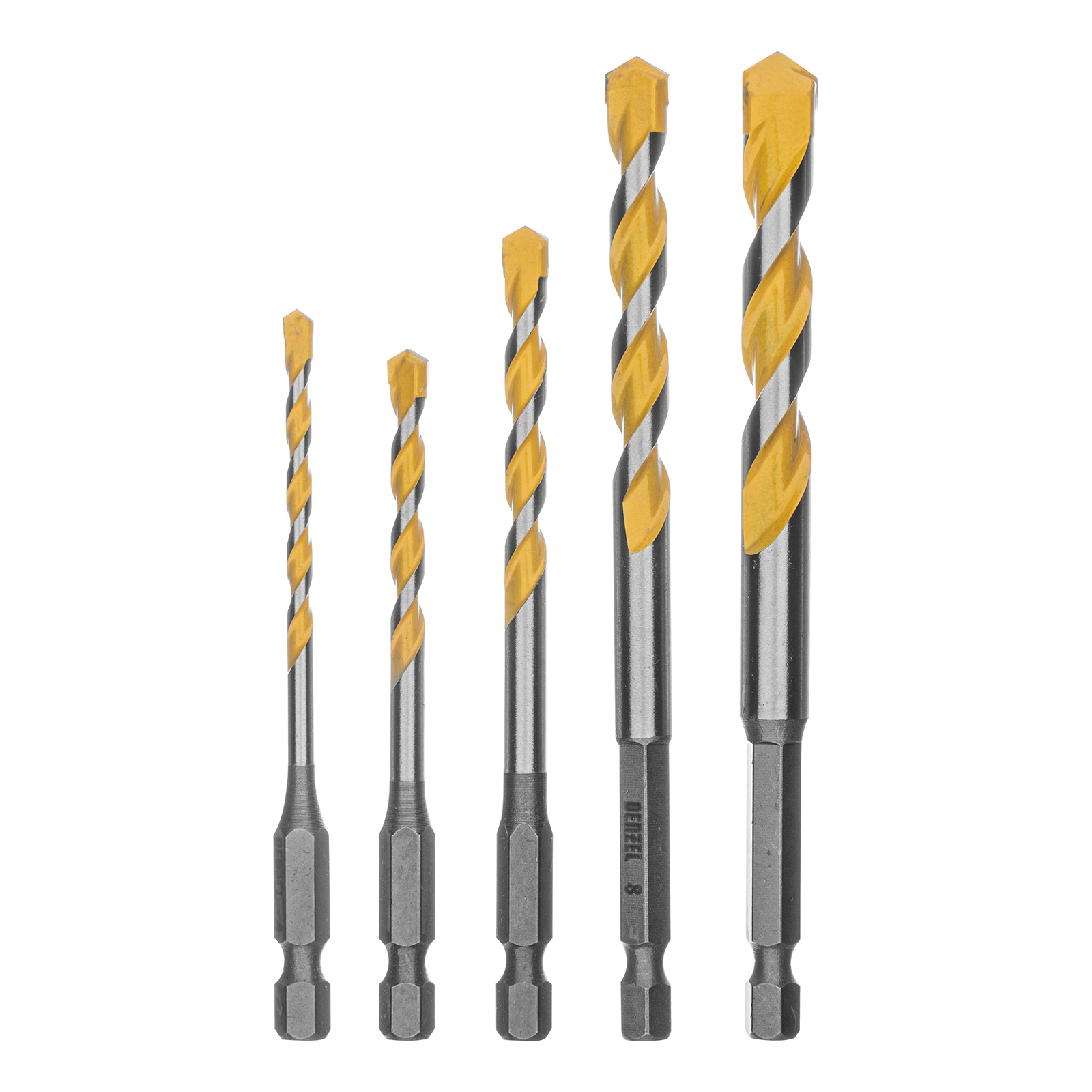 Набор универсальных сверл Denzel Multi Cut 706016, 5 штук, предназначен для получения отверстий диаметром 4-10 мм в бетоне, металле, керамике, древесине любых пород, фанере, пластмассе и других материалах. Будет полезен в быту и профессиональной сфере.