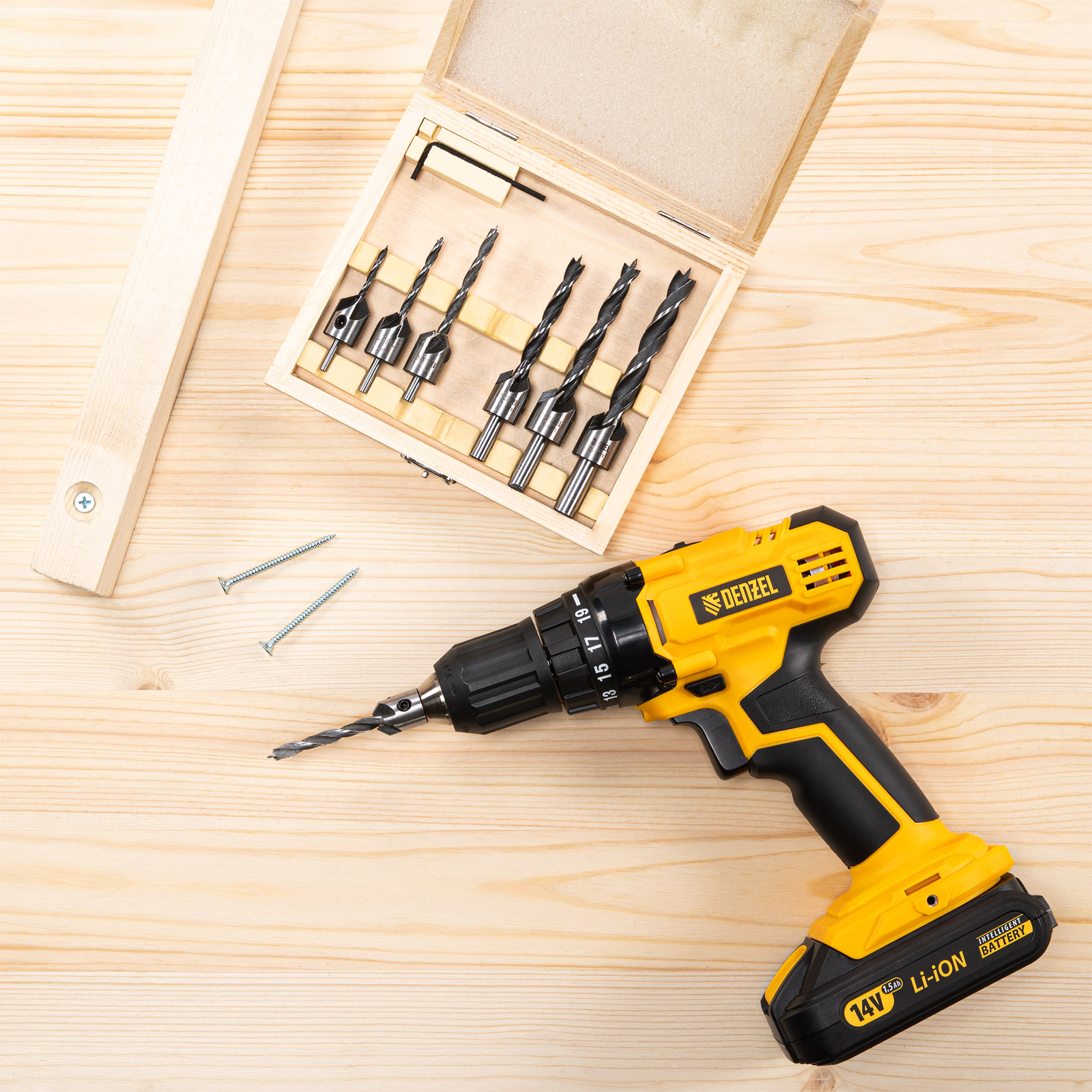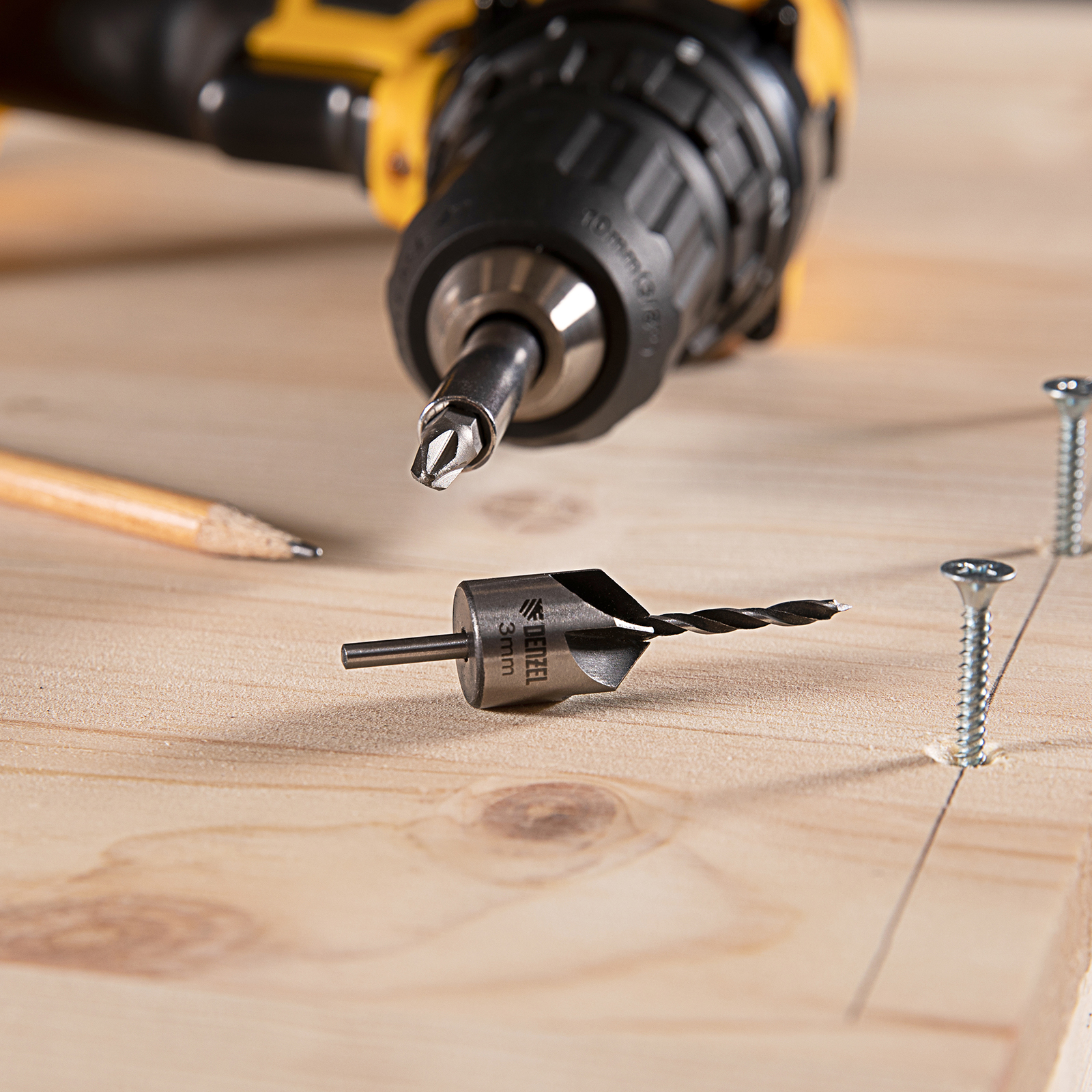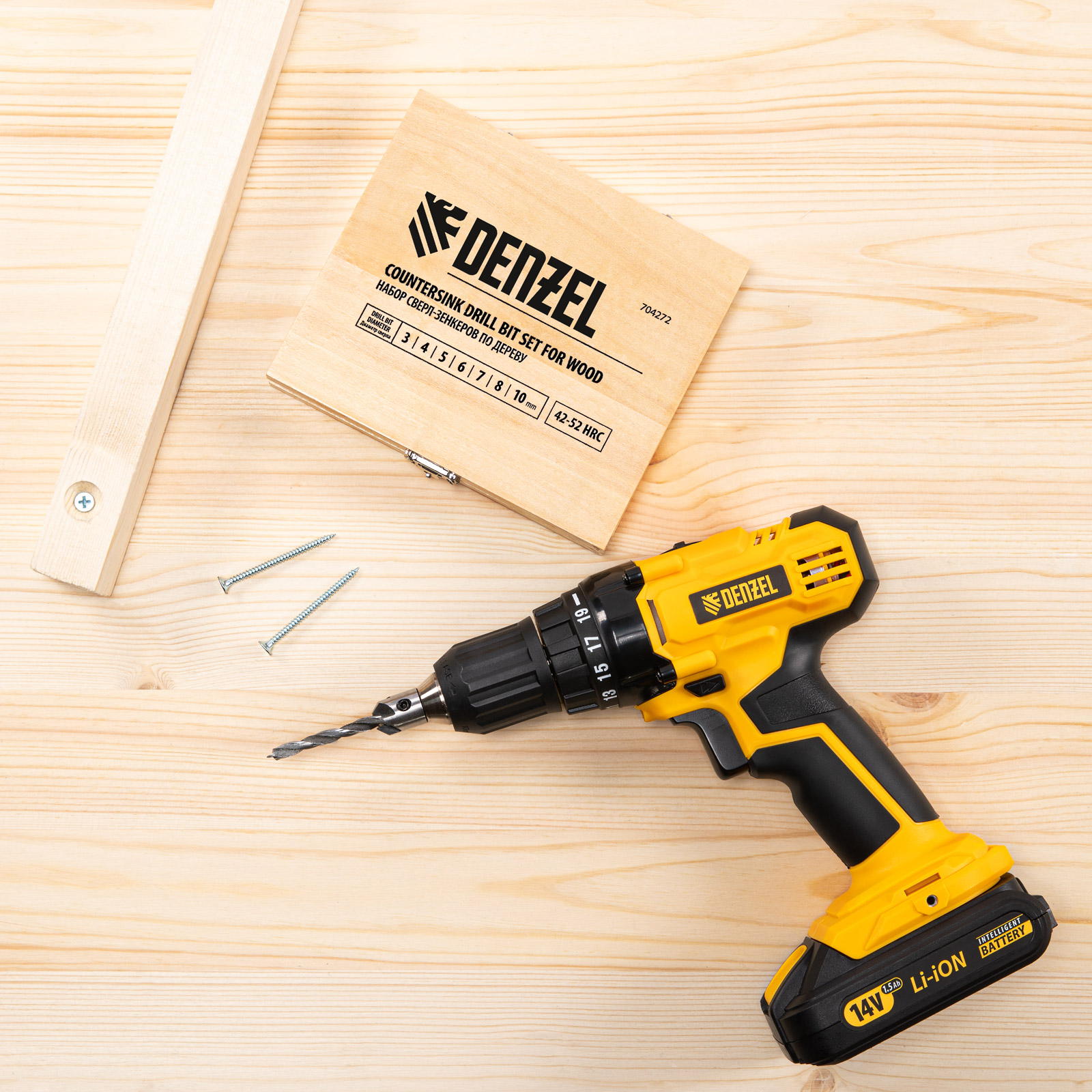 Набор сверл-зенкеров по дереву Denzel 704272 включает 7 оснасток диаметром 3-10 мм и используется для получения отверстий с гнездом под потайную шляпку самореза. Сверла подходят для работы по древесине, фанере, ДСП и используются для сборки мебели, а также строительных и монтажных работ.