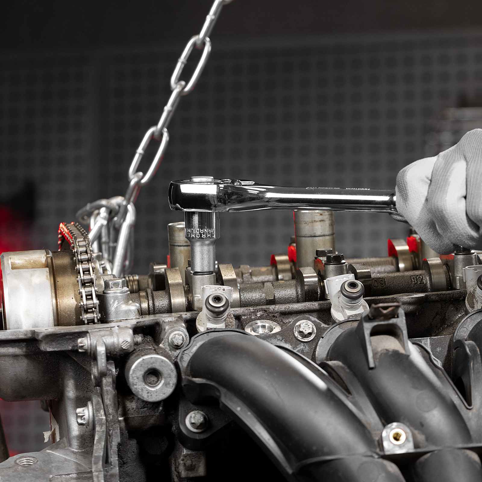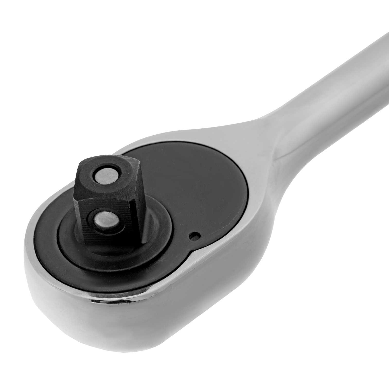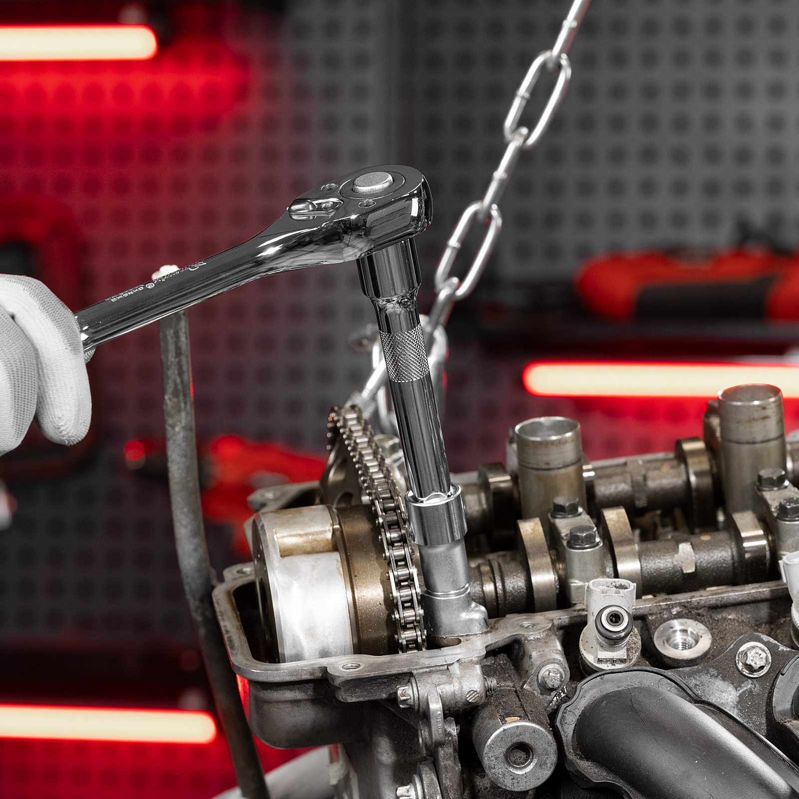- Реверс — благодаря специальному переключателю ключ-трещотка может использоваться и для закручивания, и для откручивания крепежей.