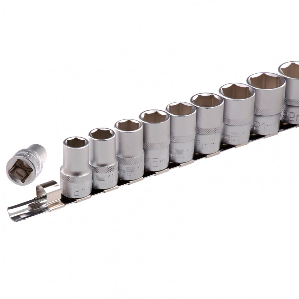 Набор 6-гранных торцевых головок Stels 13600 из стали CrV включает в себя 10 насадок 10-22 мм с присоединительным размером 1/2 дюйма. Он пригодится для ремонта крупногабаритной техники и обслуживания авто. Торцевые головки выдерживают высокие нагрузки, поэтому подходят для профессионального применения.
