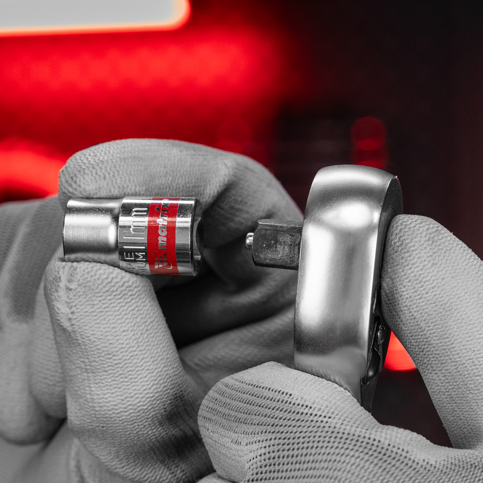 - Быстрый поиск нужной насадки — каждая торцевая головка маркирована ярко-красной полоской и имеет обозначение типоразмера.
