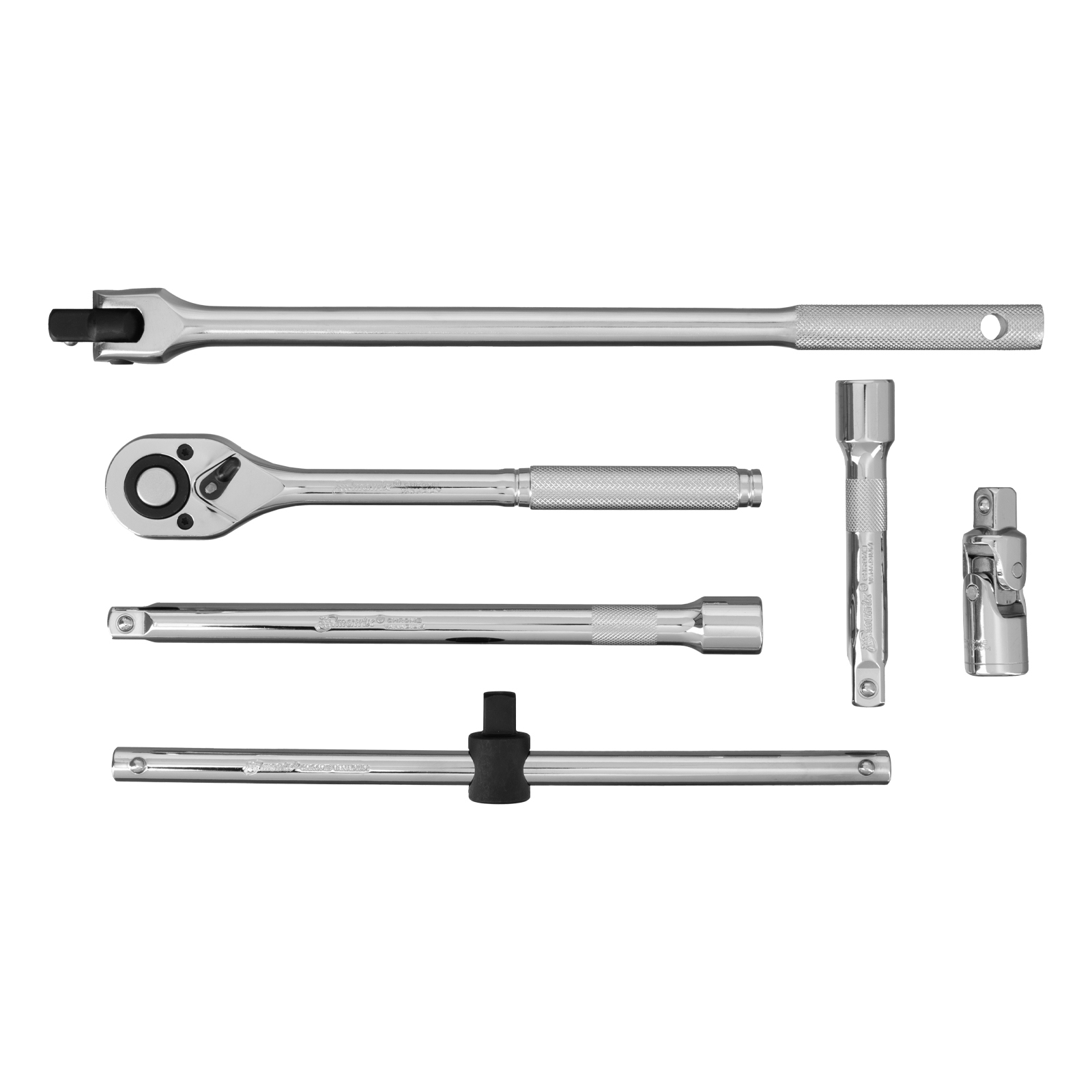 Набор Matrix 13582 состоит из 24 предметов с присоединительным квадратом 1/2" (торцевые головки, трещотка, удлинители. воротки, кардан), необходимых для проведения слесарно-монтажных работ любой сложности. 18 шестигранных торцевых головок диаметром от 10 до 32 мм позволяют решать широкий спектр задач. Воротки, удлинители и шарнирный кардан облегчают работу в труднодоступных местах. Набор пригодится автолюбителям и работникам автосервисов.