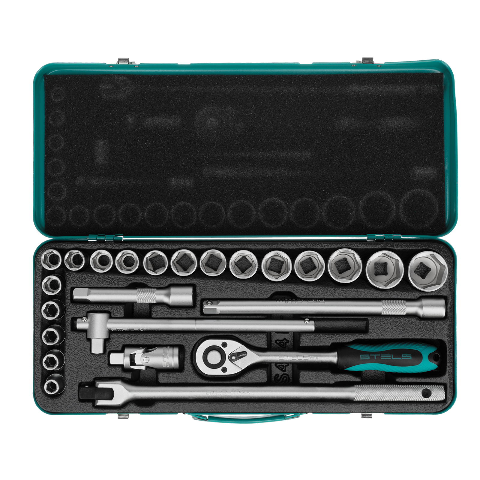 Шоферский набор Stels 13578 с присоединительным квадратом 1/2 дюйма включает в себя 24 предмета. Он станет незаменимым помощником для специалистов СТО и автолюбителей, пригодится в гараже, поездке, а также дома и на даче.