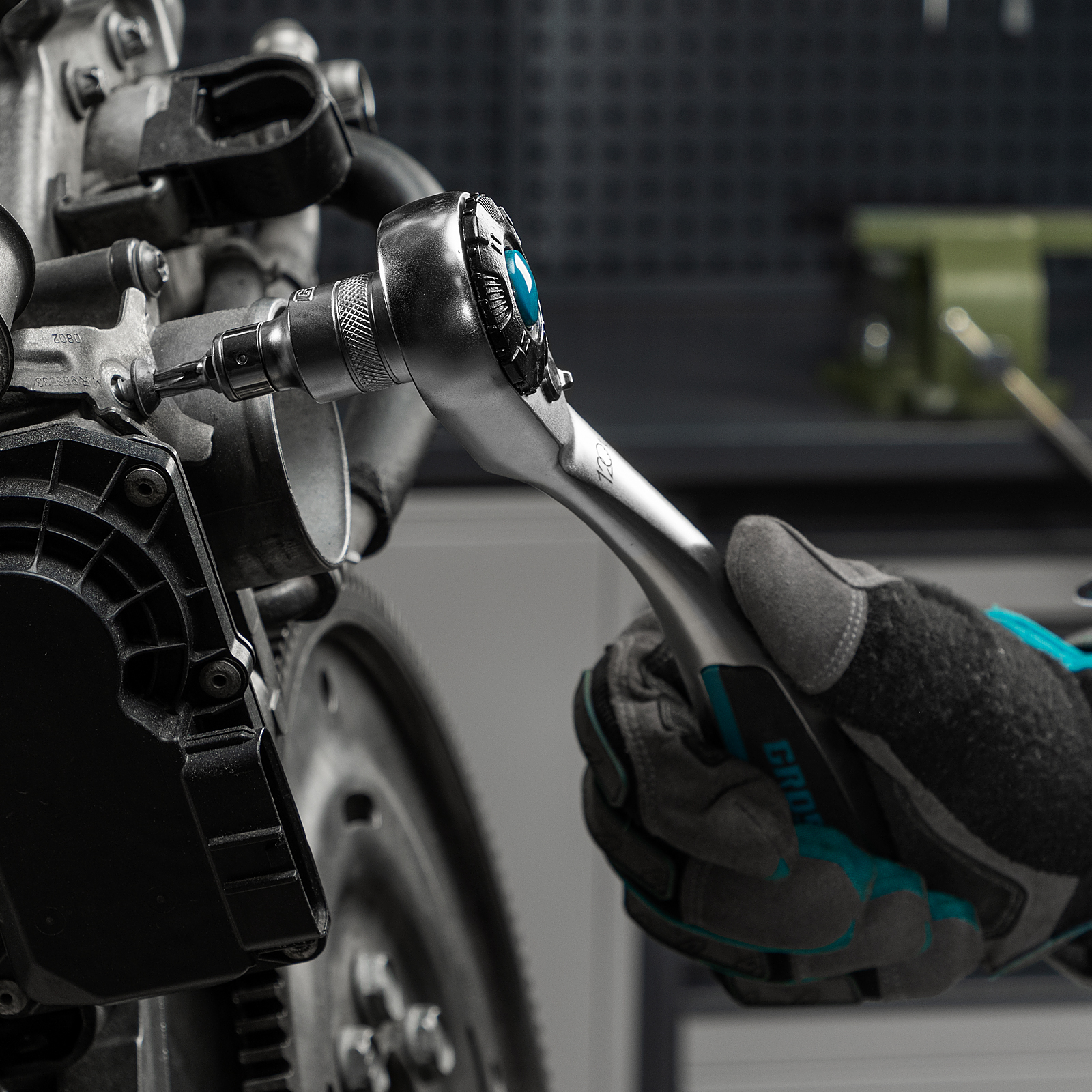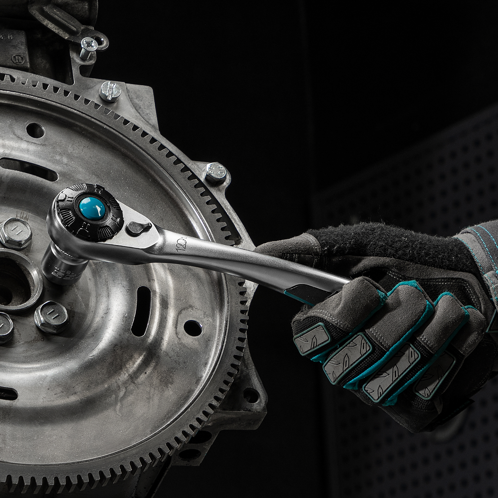 - Удобная работа в труднодоступных местах — цельнокованая трещотка со 120 зубьями позволяет вращать крепеж максимально плавно и мягко.