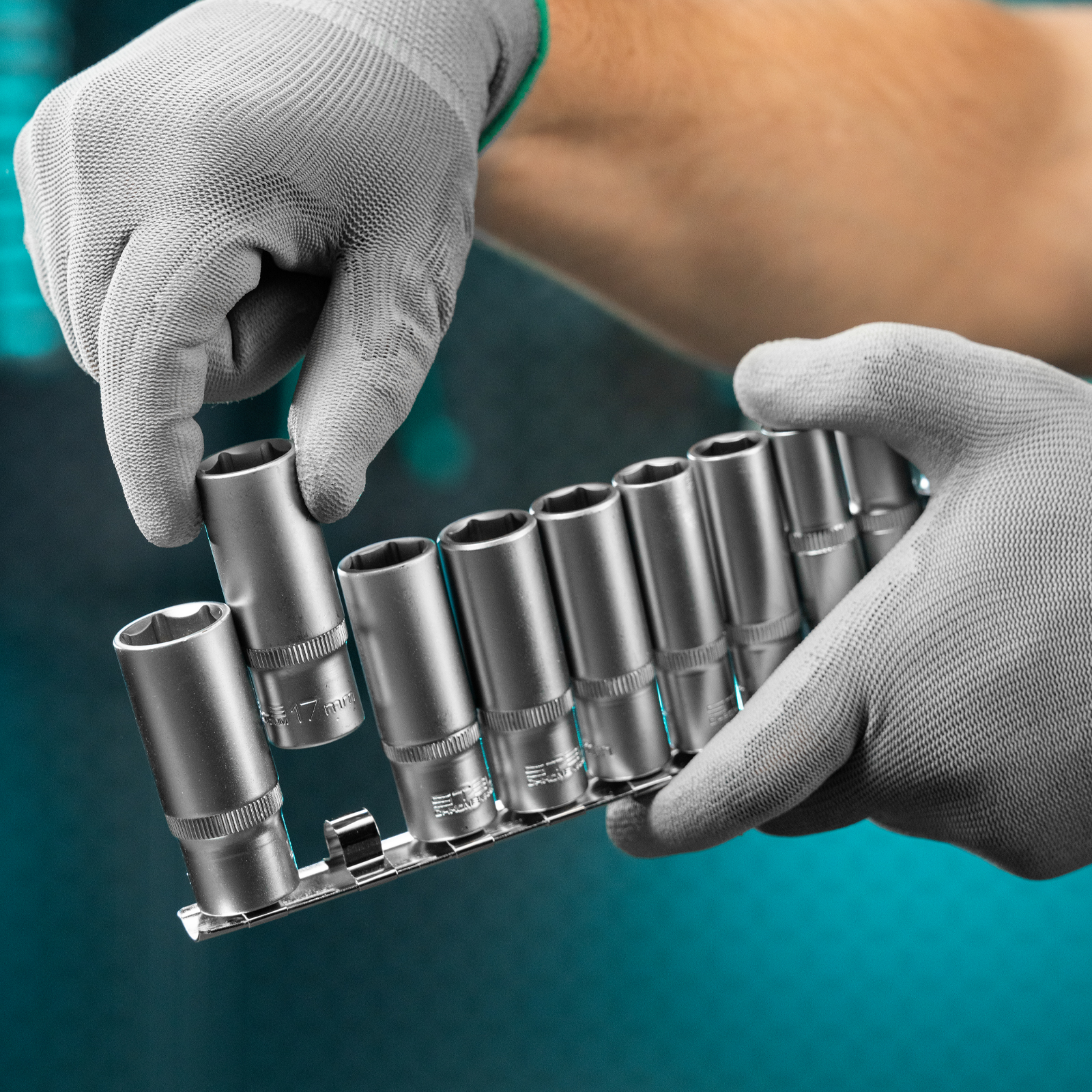 - Прочность и износостойкость — головки из высококачественной хромованадиевой стали выдерживают интенсивные нагрузки.