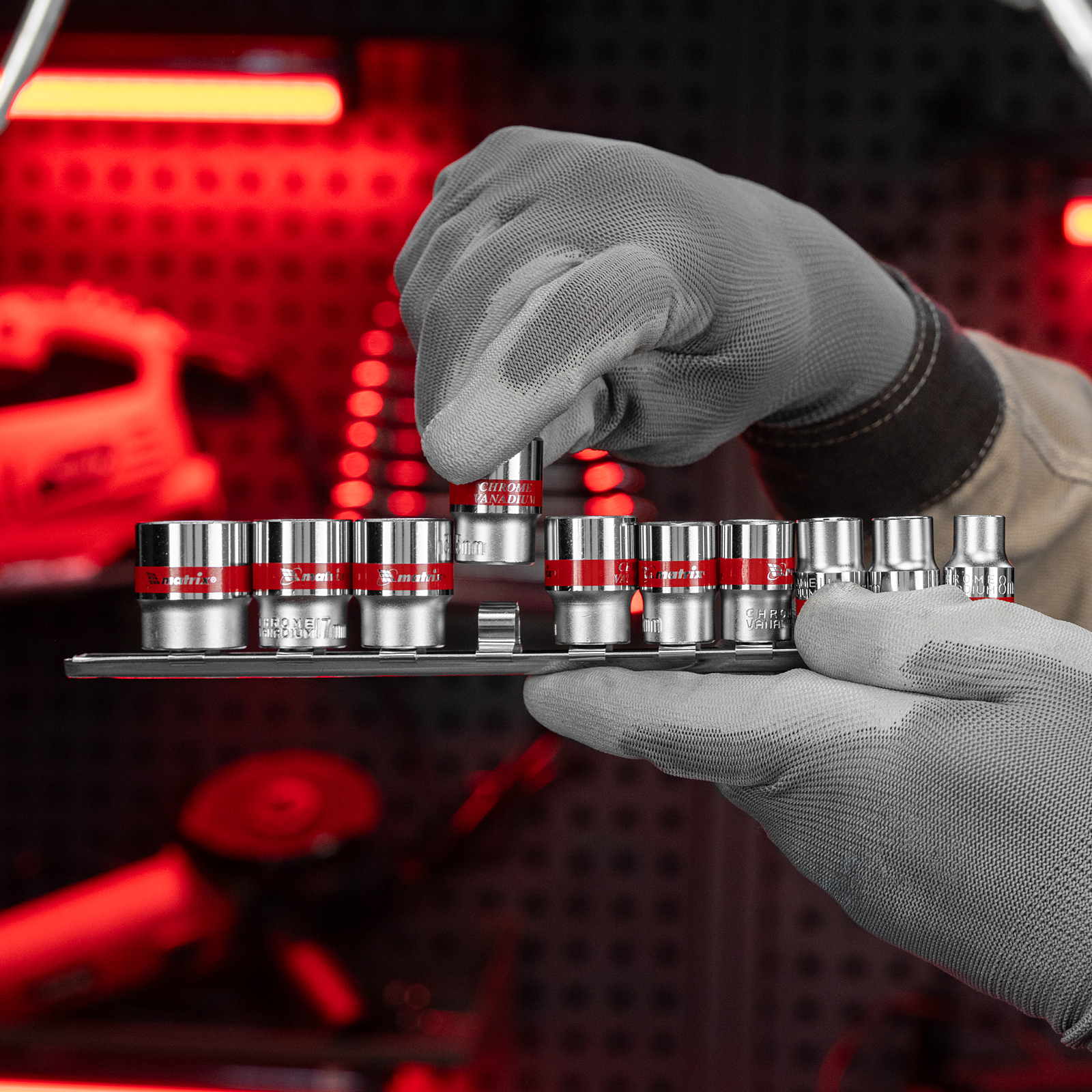 - Быстрый поиск нужной насадки — торцевые головки маркированы ярко-красными полосками.