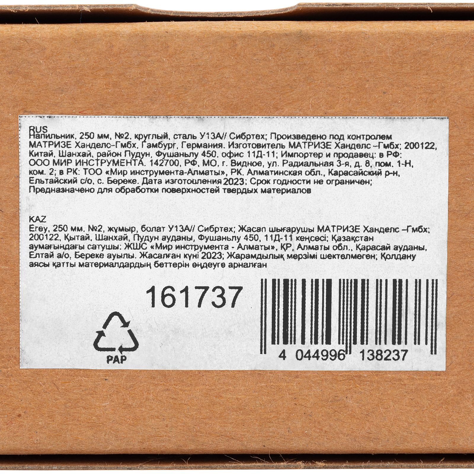 Круглый напильник Сибртех 161737 из стали У13А, с полотном длиной 250 мм, с насечкой №2, предназначен для чистовой обработки металлических заготовок с круглыми или овальными отверстиями, а также вогнутыми поверхностями. Позволяет привести деталь в соответствие с необходимыми параметрами. Инструмент пригодится в слесарной мастерской, а также дома или на даче.