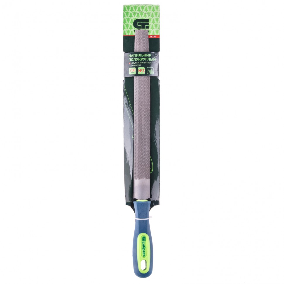 Полукруглый напильник Сибртех 16330 с насечкой №2, полотном длиной 250 мм и двухкомпонентной рукояткой, используется для промежуточной обработки металлических заготовок после применения драчевого напильника. Подходит для опиливания плоских и вогнутых поверхностей. Будет полезен в слесарной мастерской, а также дома или на даче.