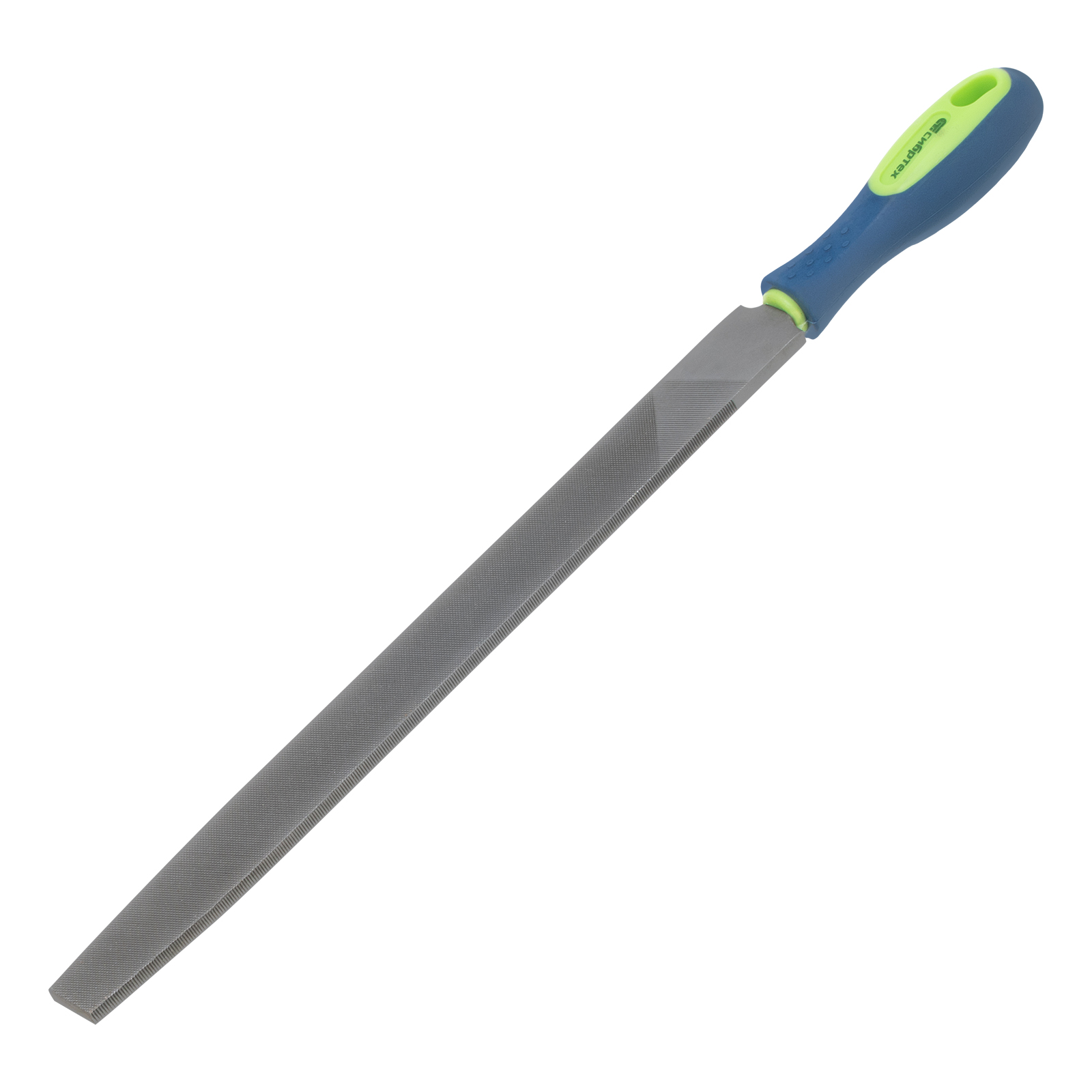 Плоский напильник Сибртех 16233 с полотном длиной 300 мм с насечкой №2, с двухкомпонентной рукояткой, — инструмент для ручной доводки металлических изделий. Применяется после грубой обработки драчевым напильником. Позволяет зачистить плоскую или выпуклую наружную поверхность, придать заготовке нужную форму или размер. Напильник будет полезен в слесарной мастерской, а также дома или на даче.