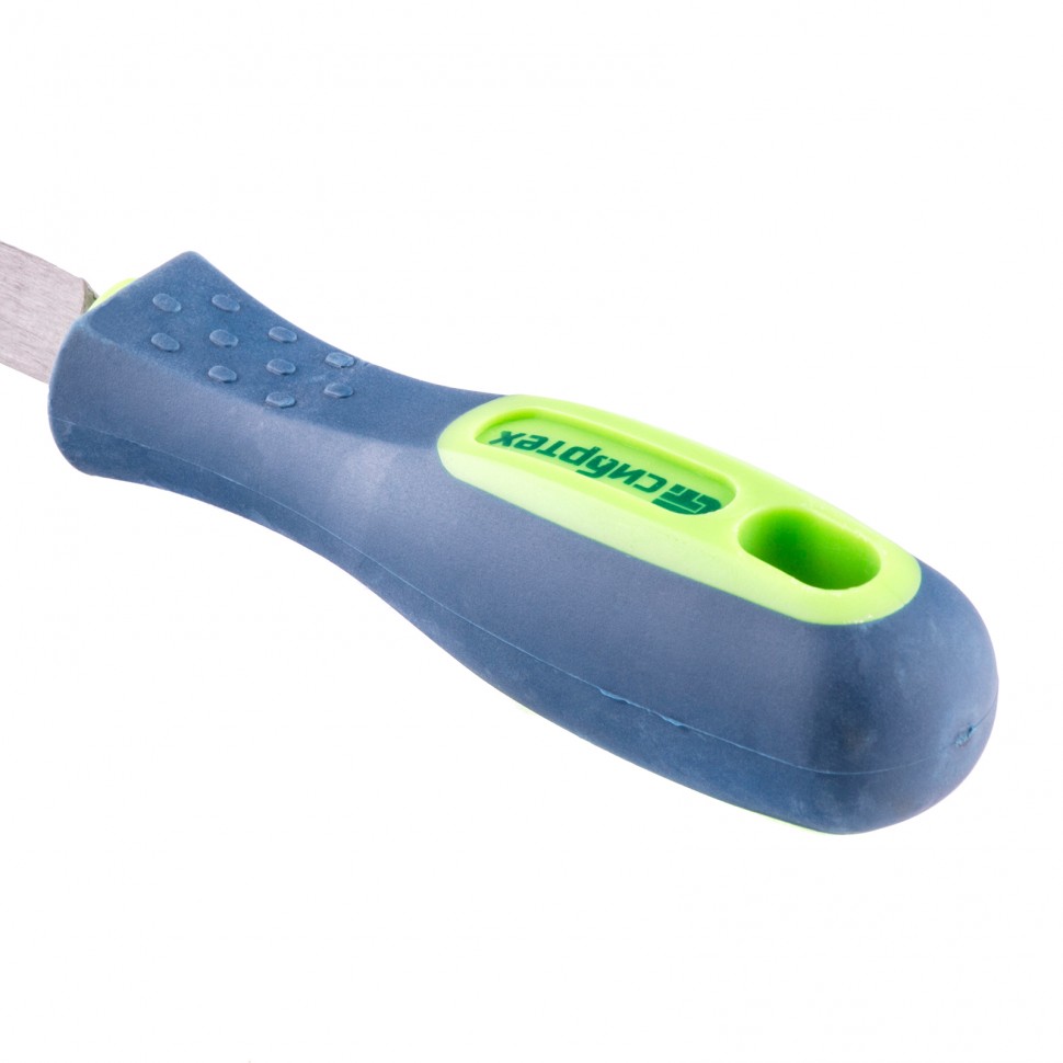 - Долговечность — напильник изготовлен из высокоуглеродистой стали У13А, характеризующейся прочностью и устойчивостью к нагрузкам.