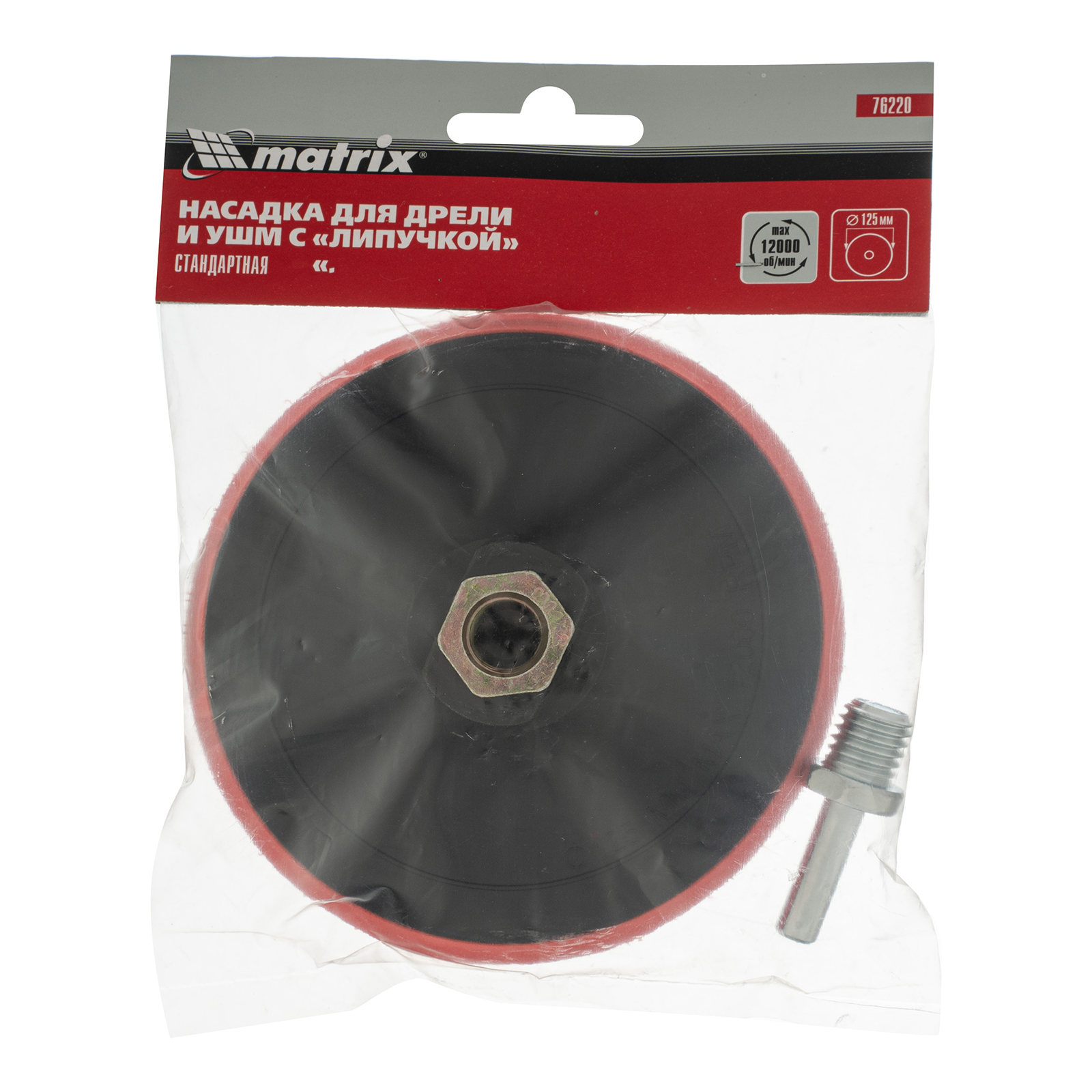 Насадка для дрели и УШМ с липучкой Matrix 76220 используется с дрелями и углошлифовальными машинами, поддерживающими оснастки диаметром 125 мм и имеющими рабочий диапазон вращения до 12000 об/мин. Предназначена для установки абразивных и полировальных кругов на ворсовой подложке. Насадка с демпферной вставкой из вспененного этиленвинилацетата (EVA) универсальна и подходит для всех видов полировальных и шлифовальных работ.