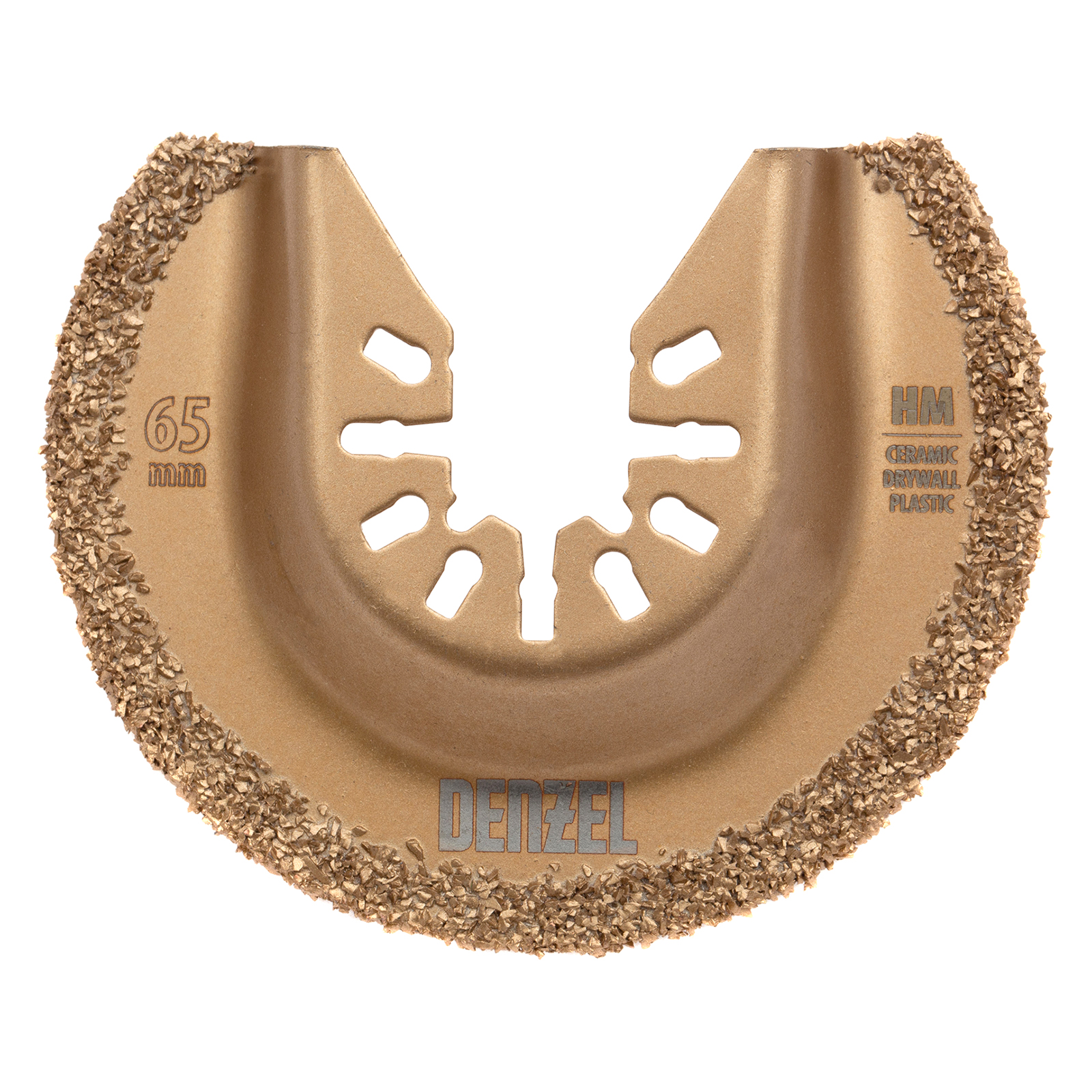 Режущая полукруглая насадка для МФИ по плитке и дереву Denzel 782325, 65 мм, сталь HM, позволяет осуществить шлифование поверхностей. Она находит подходит для обработки мягкой плитки, керамики, древесины, зачистки швов и т.д. Благодаря повышенному содержанию марганца в составе насадка рассчитана на повышенные механические нагрузки, что позволяет решать профессиональные задачи.