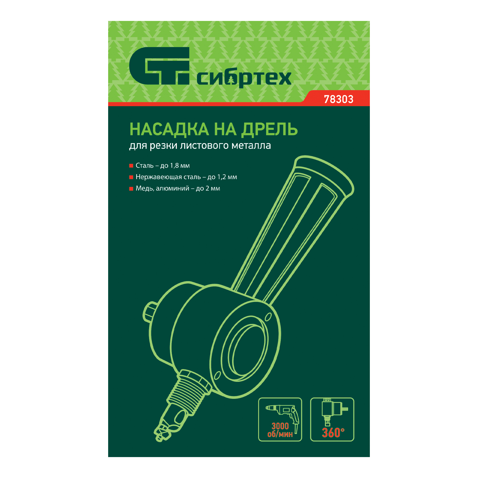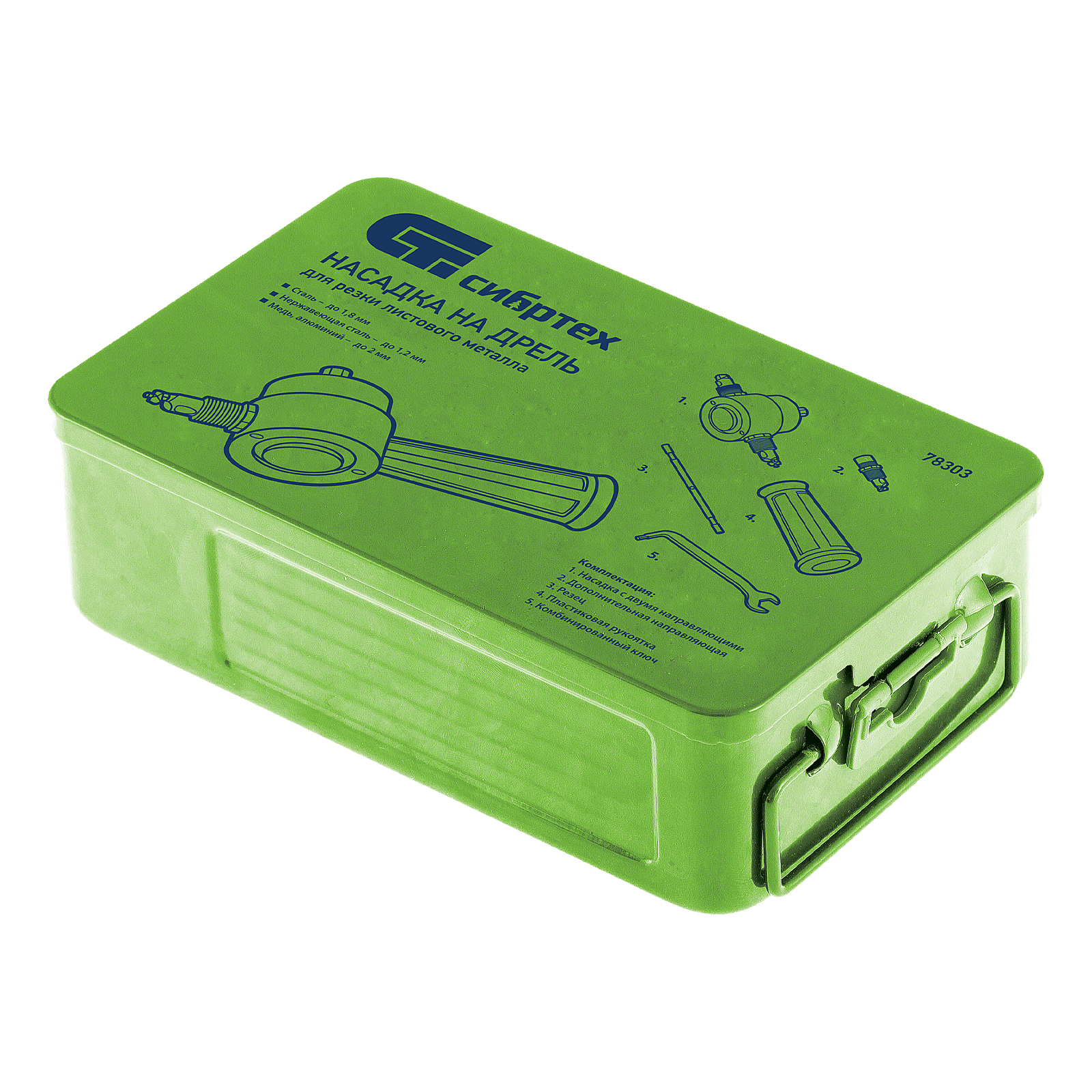 Насадка на дрель для резки листового металла Сибртех 78303 в металлическом кейсе позволяет разрезать сталь толщиной до 1,8 мм, нержавеющую сталь толщиной до 1,2 мм, медь и алюминий — до 2 мм. Ширина реза составляет 6 мм, он может быть не только прямым, но и фигурным. Приспособление устанавливается на электрические дрели со скоростью вращения 3000 об/мин. Насадка для резки металла будет полезна при проведении кровельных работ, а также пригодится в слесарной мастерской, на даче или в гараже.