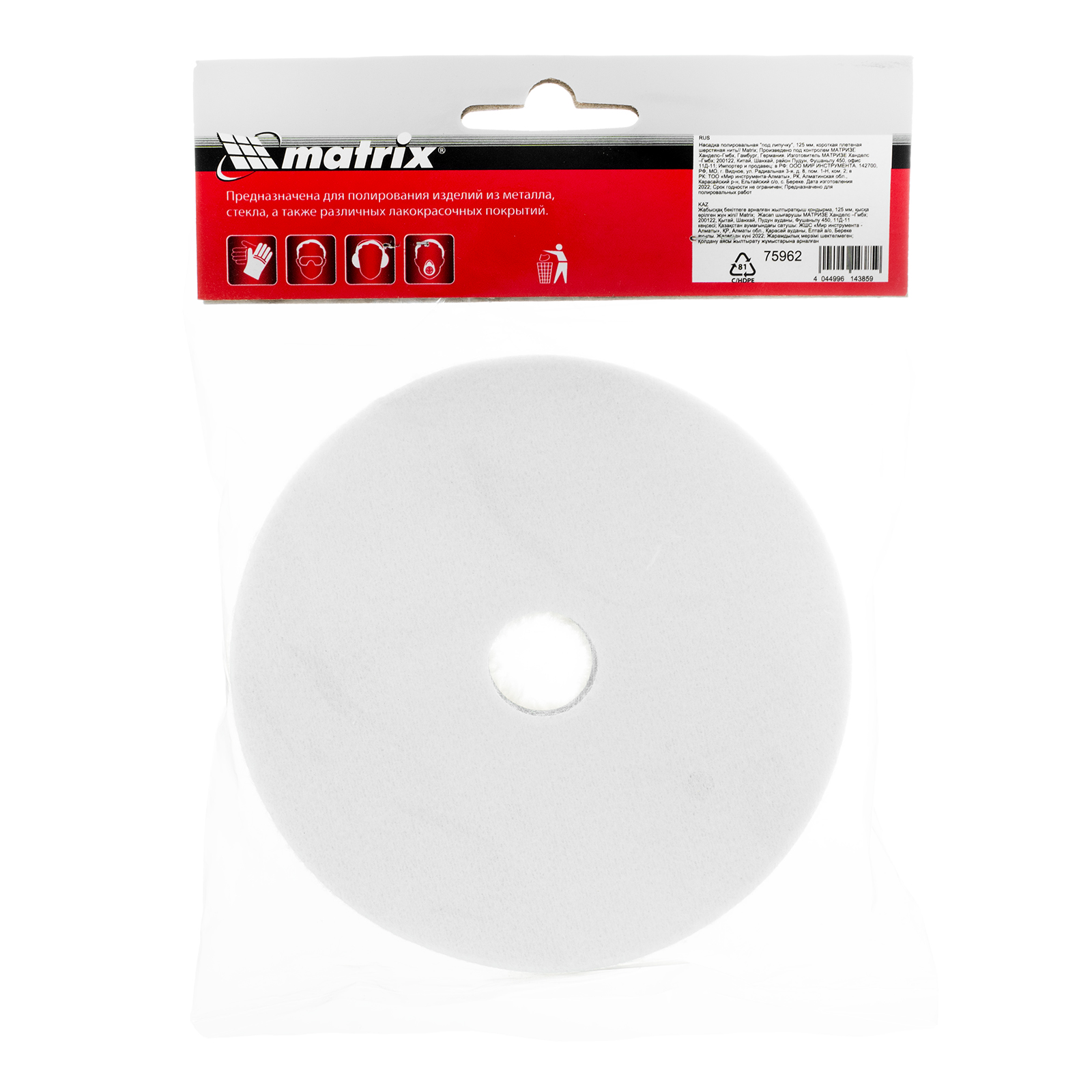 Полировальная насадка «под липучку» Matrix 75962 с короткой плетеной шерстяной нитью устанавливается на опорную тарелку дрели или шлифовальной машинки, работающей с оснасткой диаметром 125 мм. Ее используют при финишной обработке металлических, стеклянных и окрашенных поверхностей. Короткий ворс быстро устраняет мелкие трещины и царапины, а также придает блеск. Насадка пригодится для работ в автосервисе или личном гараже.