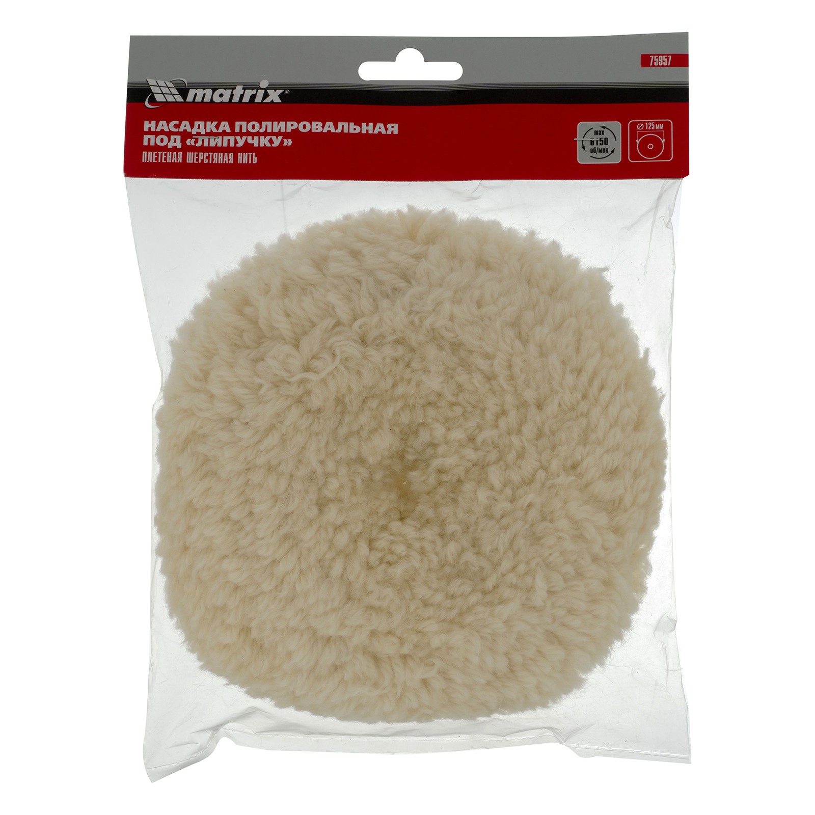 Полировальная насадка «под липучку» Matrix 75957 диаметром 125 мм, с рабочей поверхностью из плетеной шерстяной нити, применяется совместно со шлифовальными машинками, а также дрелями и УШМ с установленной опорной тарелкой «под липучку» соответствующего типоразмера. Ворс высотой 30 мм обладает хорошей полирующей способностью, эффективно устраняет микротрещины и придает блеск. Насадку используют для полировки металлических и стеклянных поверхностей, а также лакокрасочных покрытий, преимущественно во время проведения кузовных работ.