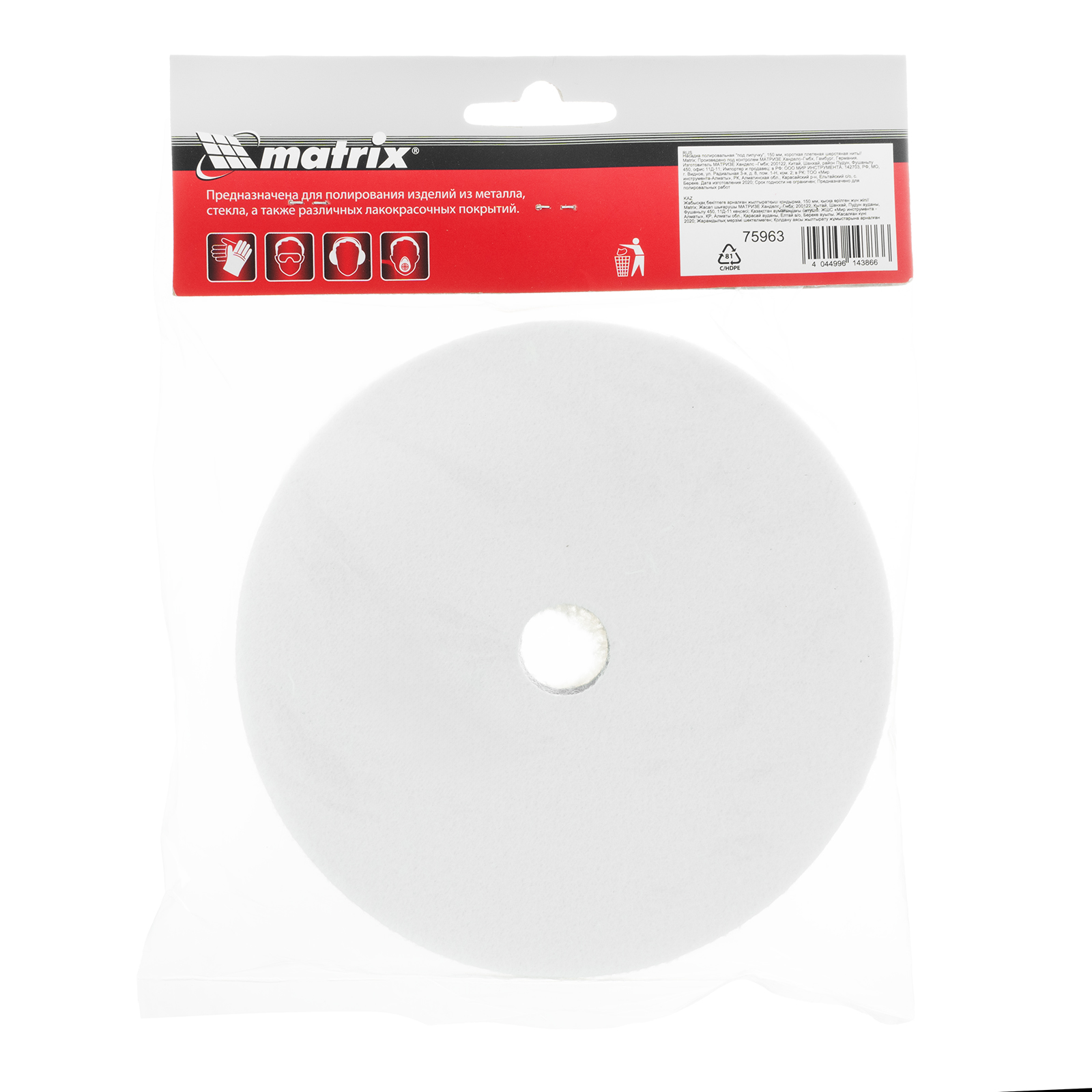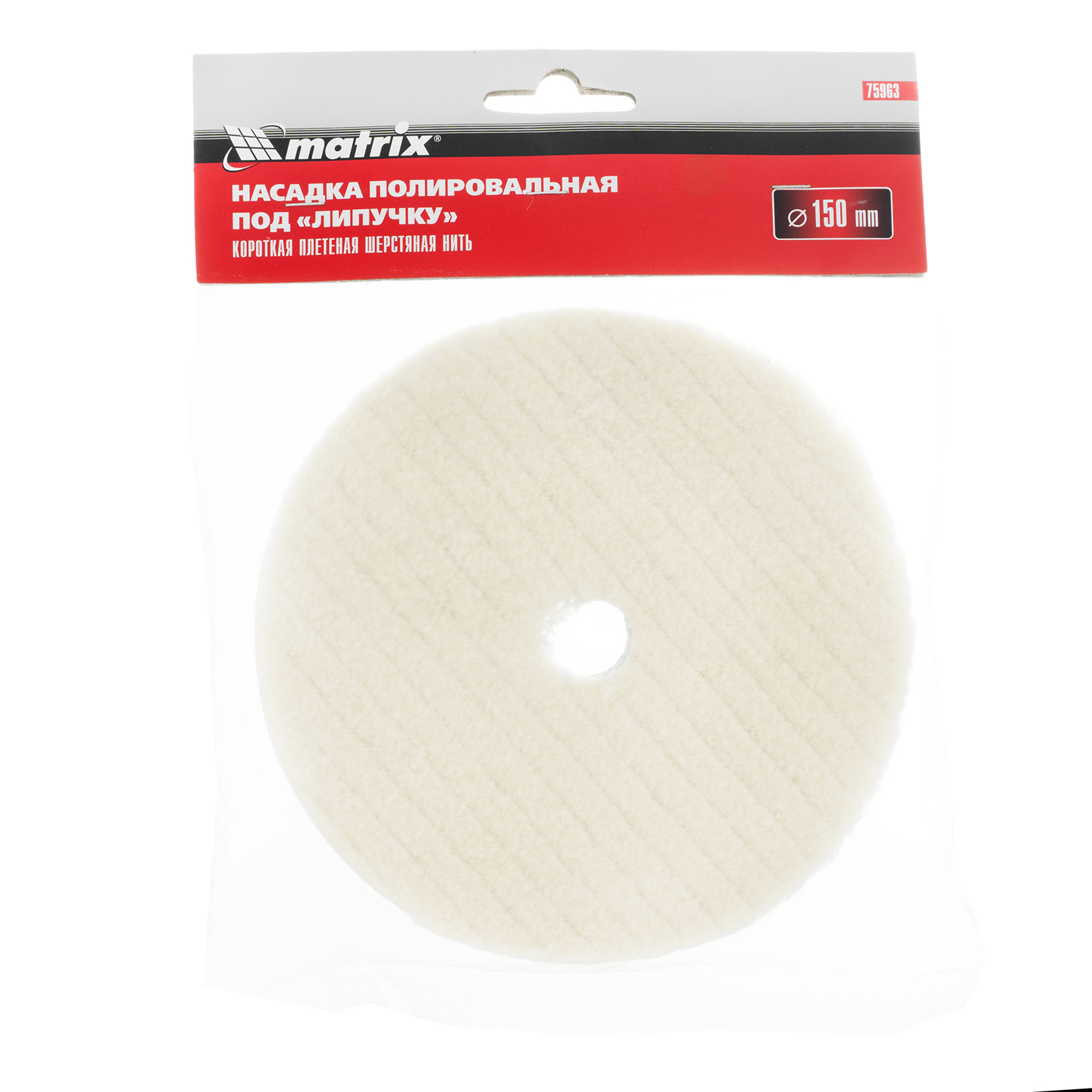 Полировальная насадка «под липучку» Matrix 75963 с короткой плетеной шерстяной нитью устанавливается на опорную тарелку дрели или шлифовальной машинки, работающей с оснасткой диаметром 150 мм. Ее используют при финишной обработке металлических, стеклянных и окрашенных поверхностей. Короткий ворс быстро устраняет мелкие трещины и царапины, а также придает блеск. Насадка пригодится для работ в автосервисе или личном гараже.