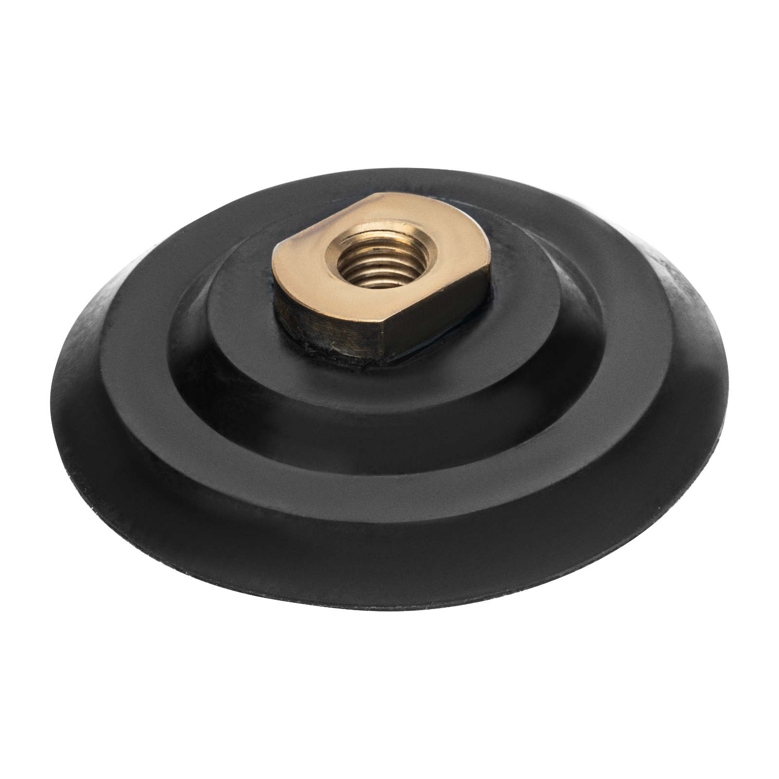Резиновая насадка для АГШК с «липучкой» Matrix 76227 диаметром 100 мм, с посадочной резьбой М14, — опора для крепления алмазных гибких шлифовальных кругов, или «черепашек». Совместима с углошлифовальными машинами, работающими с частотой вращения до 12500 об/мин. Изготовлена из прочной резины, обеспечивает хороший контакт шлифкруга с обрабатываемой поверхностью. Насадка применяется для шлифовки и полировки каменных, гранитных, мраморных и керамогранитных поверхностей.