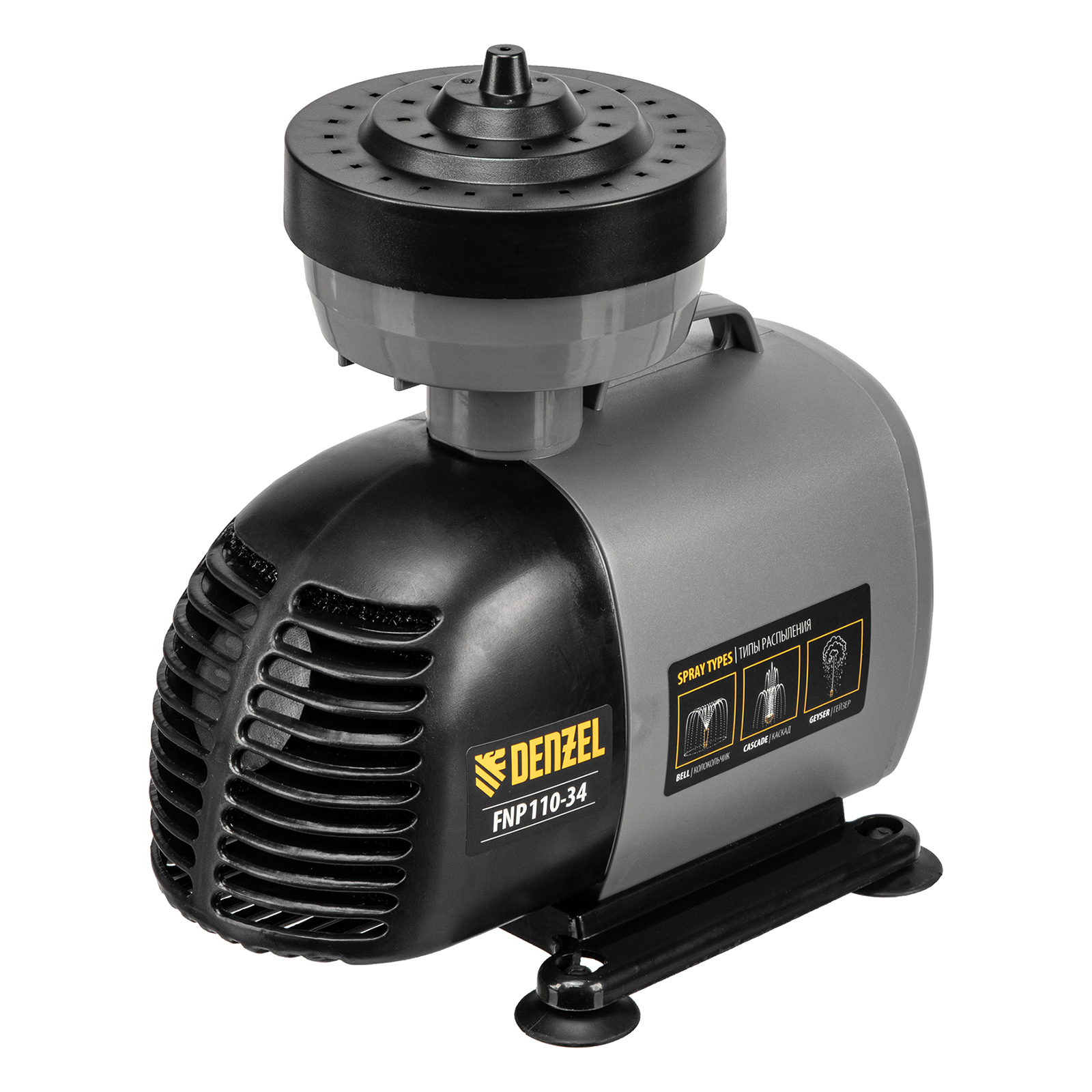 Фонтанный насос Denzel FNP110-34 99032 мощностью 112 Вт, с насадками колокольчик/каскад/гейзер, перекачивает 3400 л воды в час и обеспечивает максимальную высоту подъема 3,4 м. Позволяет создать декоративный фонтан, украсив водоем и оживив ландшафт дачного участка. Установив одну из входящих в комплект насадок, можно получить наиболее подходящий тип струи: в виде колокольчика, каскада или гейзера. Также в конструкции насоса предусмотрен специальный патрубок для создания водопада.