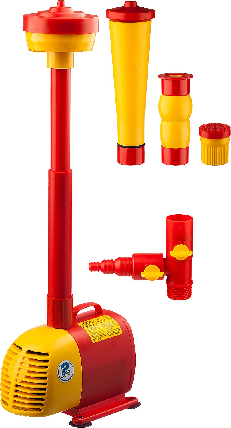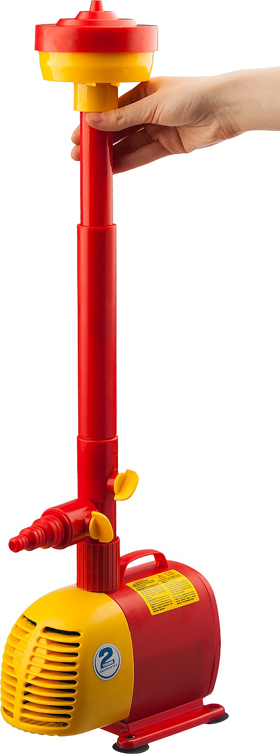 Простое средство для украшения сада. Обычный пруд с установкой насоса превращается в фонтан, причем, благодаря сменным насадкам, форма струи легко меняется между ″гейзером″, ″каскадом″ и ″колокольчиком″, а также может переключаться на водопад. Таким образом, одно изделие способно изменить Ваш пруд или сад, привнеся в него веселое и успокаивающее журчание воды, под которое так приятно отдыхать после рабочей недели