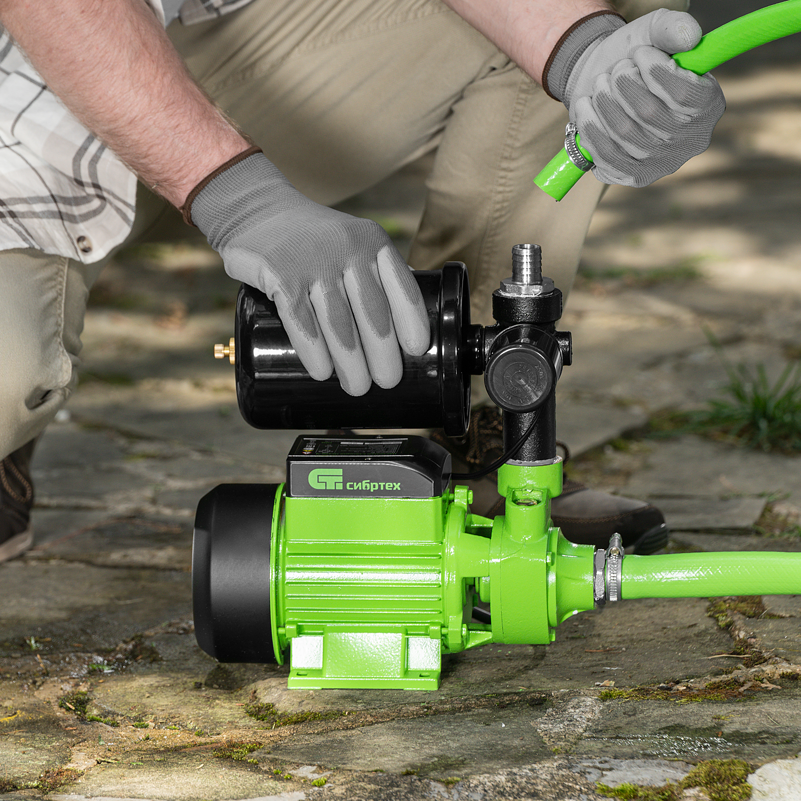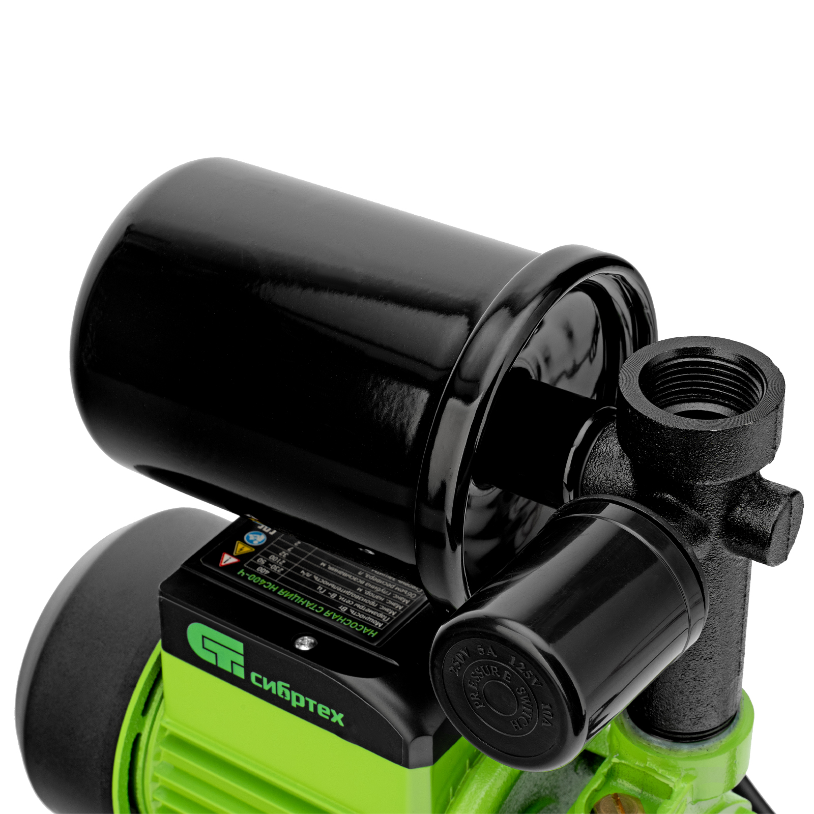 Насосная станция Сибртех НС400-Ч 97246 вихревого типа, мощностью 400 Вт, с ресивером объемом 2 л, обеспечивает напор до 32 м и производительность до 2100 л/ч. Предназначена для бесперебойной подачи чистой воды с глубины до 7 м, позволяет организовать водоснабжение на дачном участке. Насосная станция поддерживает стабильное давление в напорной магистрали и оптимальна для создания системы полива.