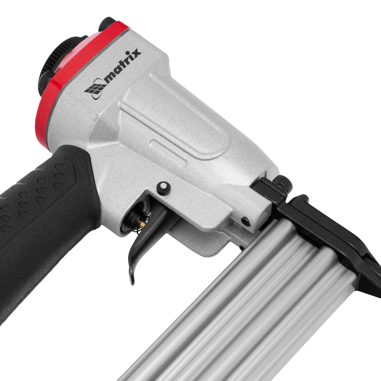Пневматический финишный нейлер Matrix 57425 (шпилькозабивной пистолет) предназначен для забивания гвоздей 23GA диаметром 0,64 мм и длиной 10-30 мм. Он используется для финишной отделки, а также сборки мебели и производства упаковки. Благодаря низкому расходу воздуха 0,7 л/мин нейлер совместим с любым типом компрессоров.