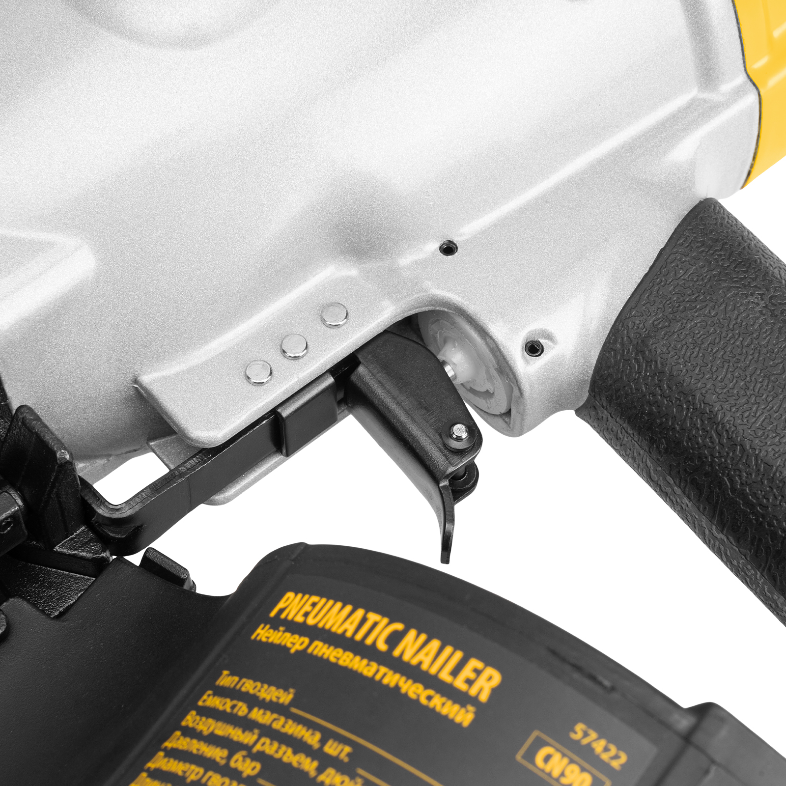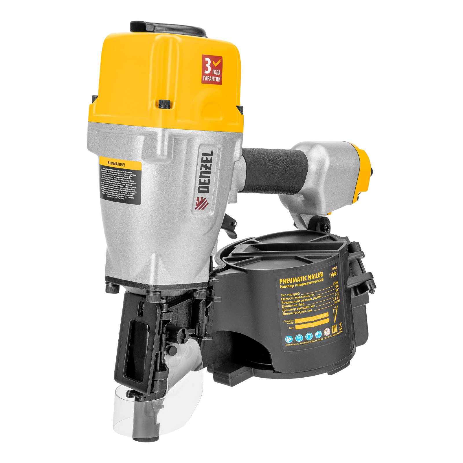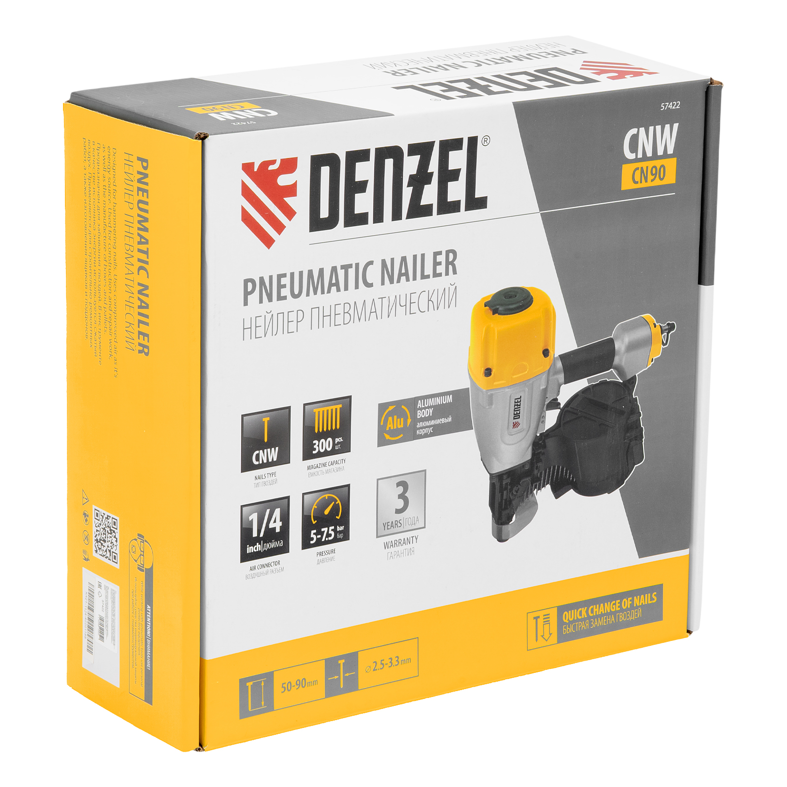 Пневматический нейлер Denzel CN90 57422 совместим с барабанными гвоздями типа CNW длиной 50-90 мм и предназначен для проведения строительно-ремонтных работ, а также производства мебели, паллет и других изделий из дерева, таких как тара и упаковка. Максимальное рабочее давление составляет 7,5 бар, что обеспечивает высокую скорость работы и позволяет быстро и эффективно решать поставленные задачи.