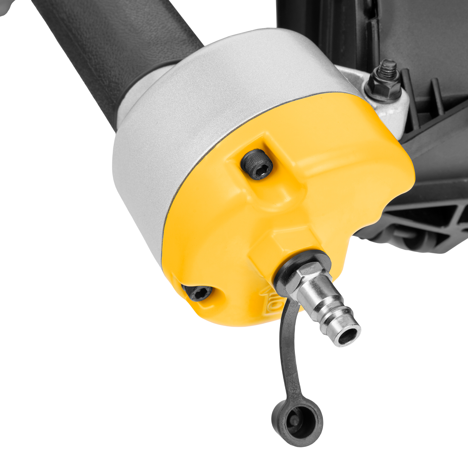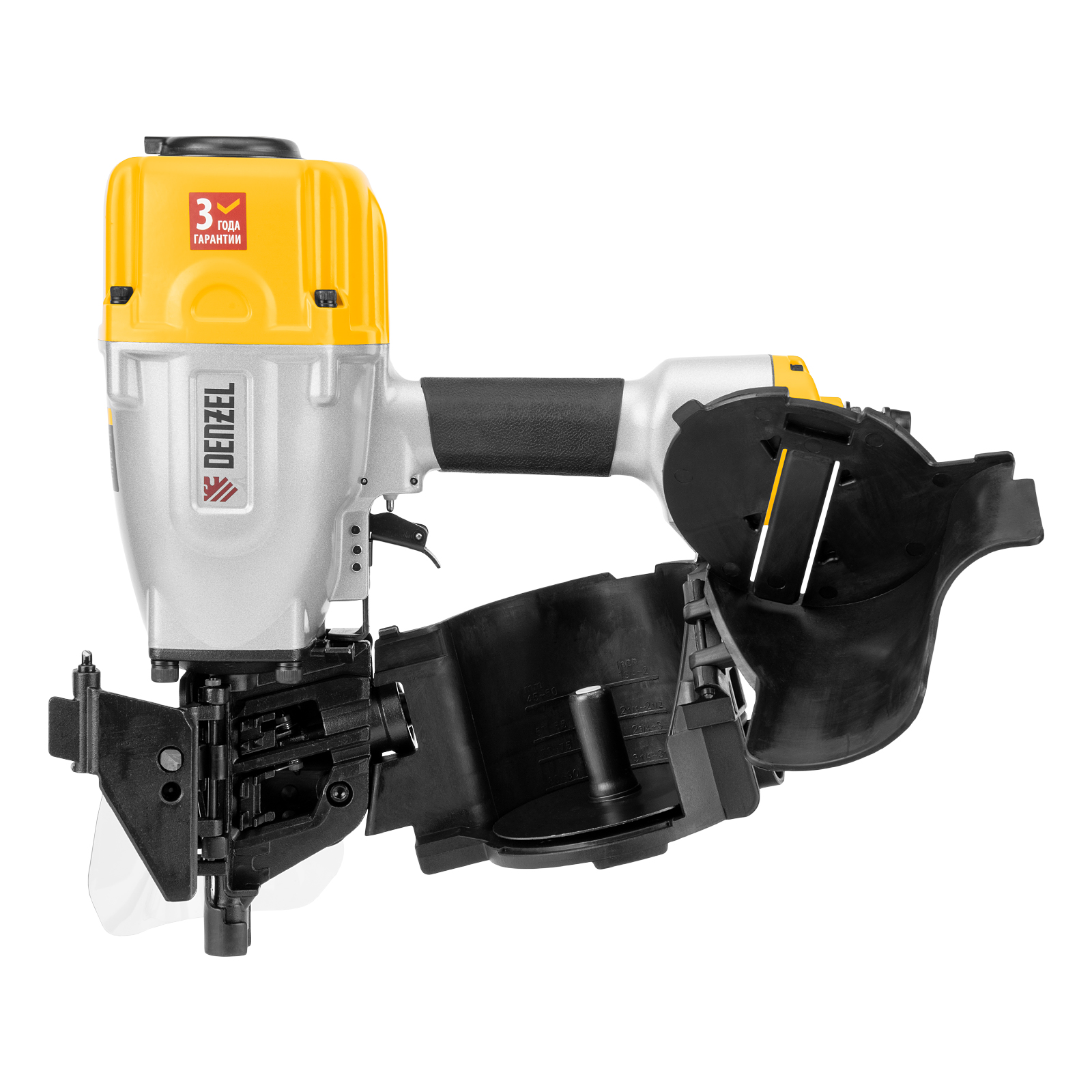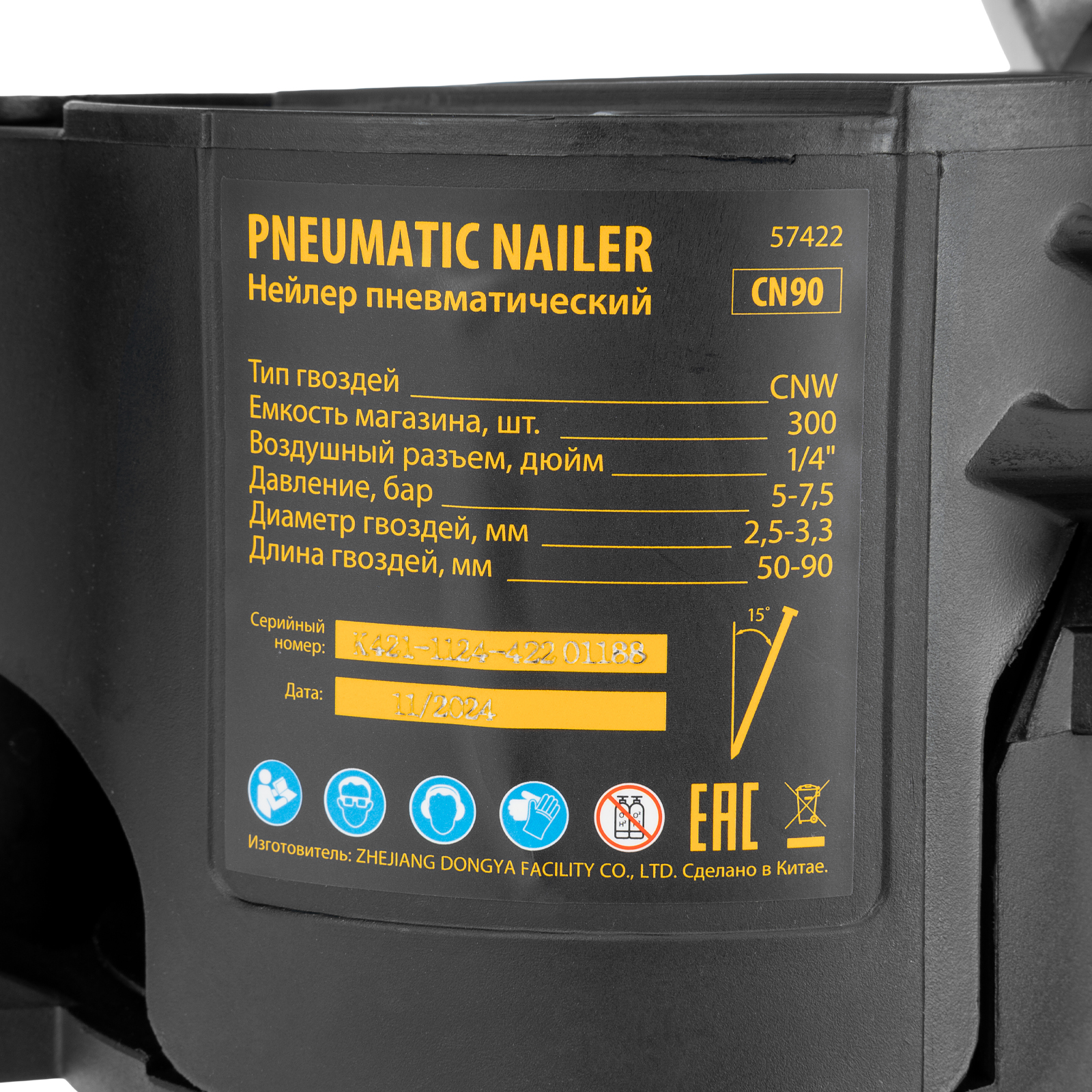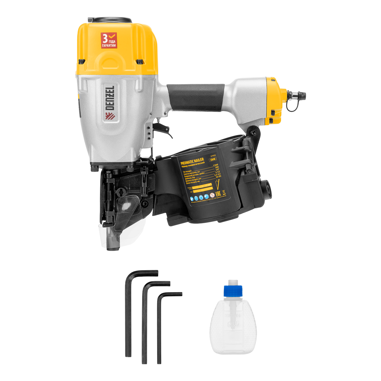 Пневматический нейлер Denzel CN90 57422 совместим с барабанными гвоздями типа CNW длиной 50-90 мм и предназначен для проведения строительно-ремонтных работ, а также производства мебели, паллет и других изделий из дерева, таких как тара и упаковка. Максимальное рабочее давление составляет 7,5 бар, что обеспечивает высокую скорость работы и позволяет быстро и эффективно решать поставленные задачи.