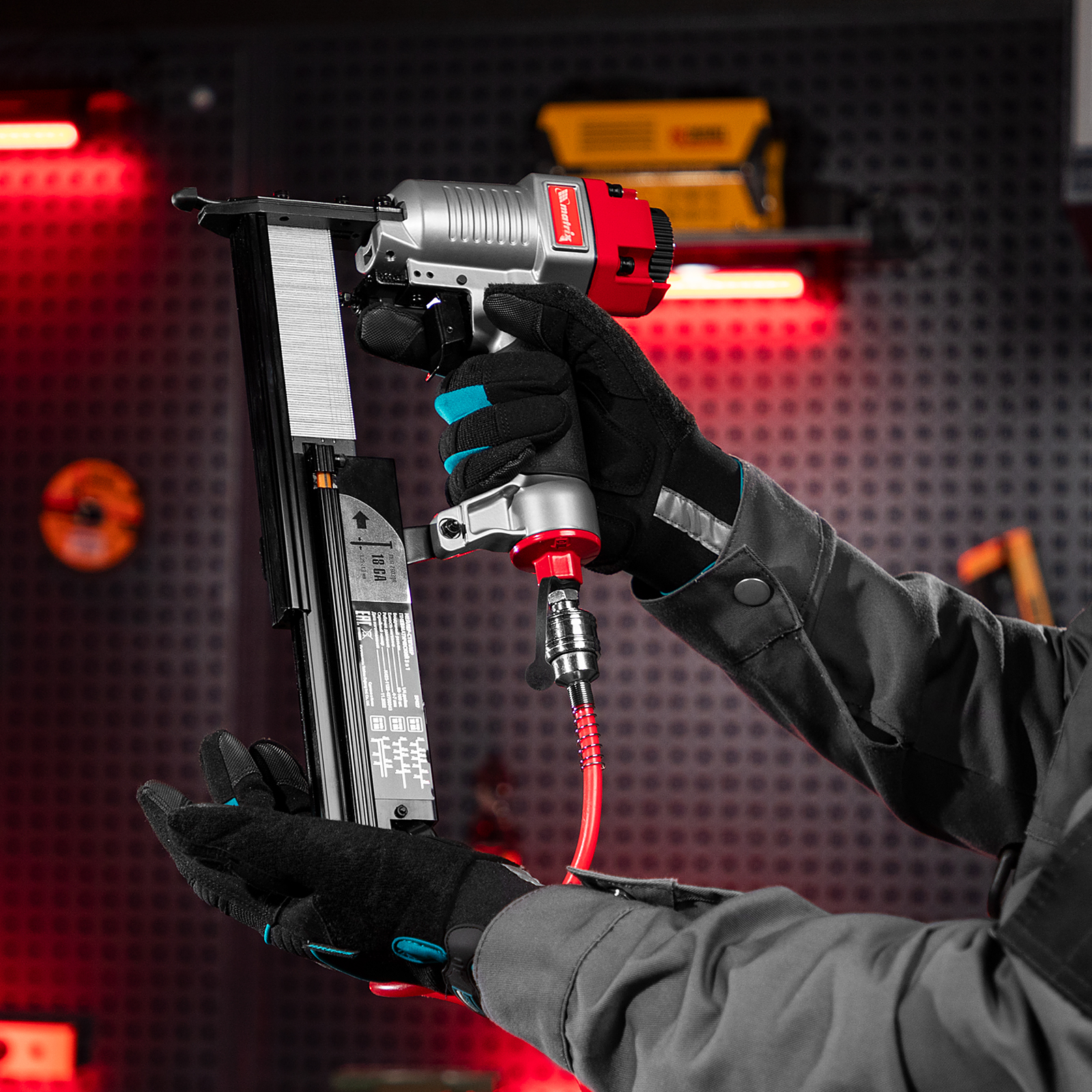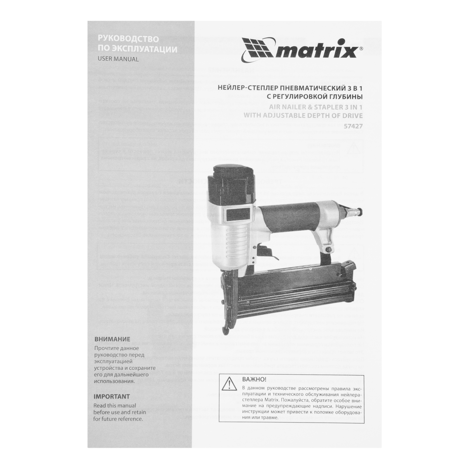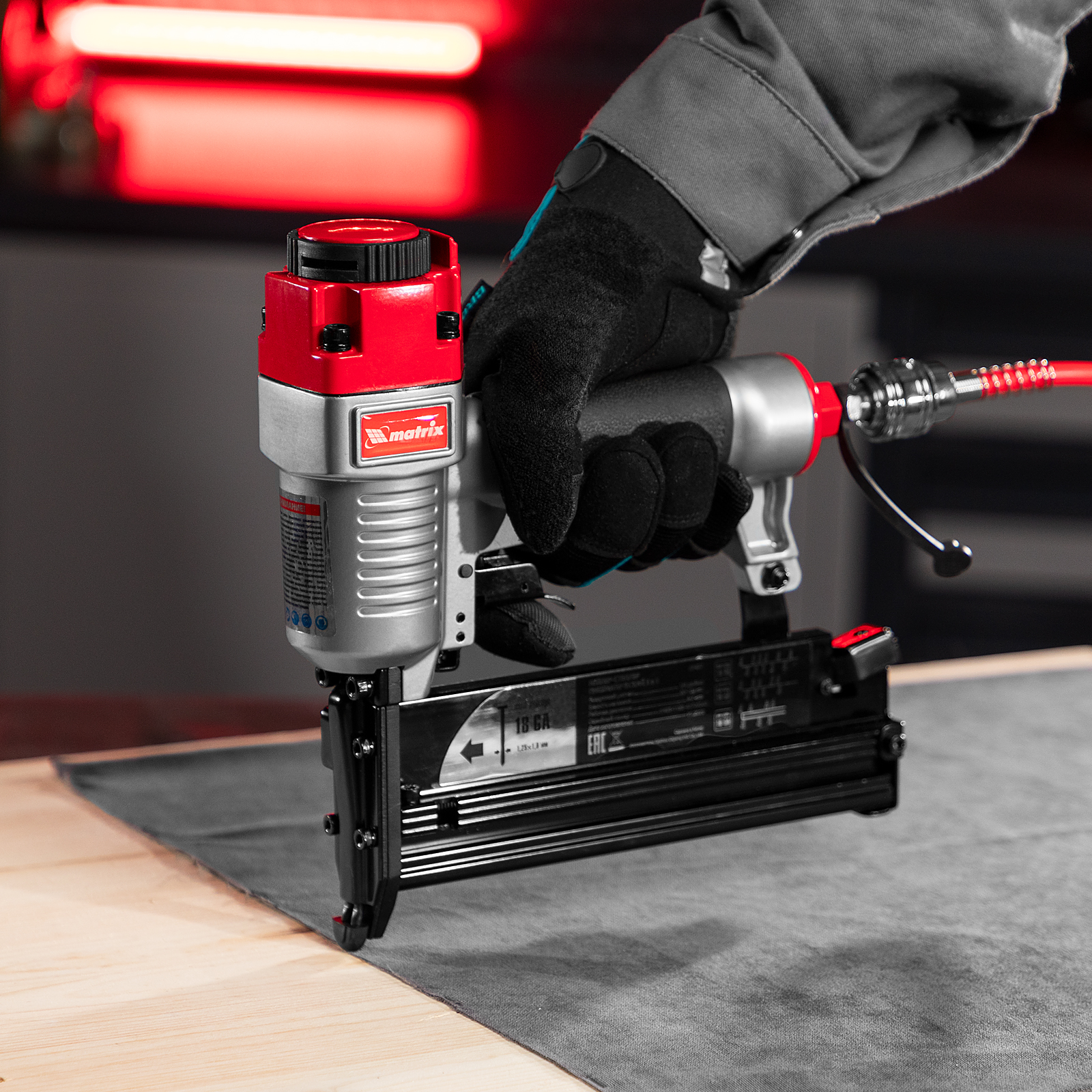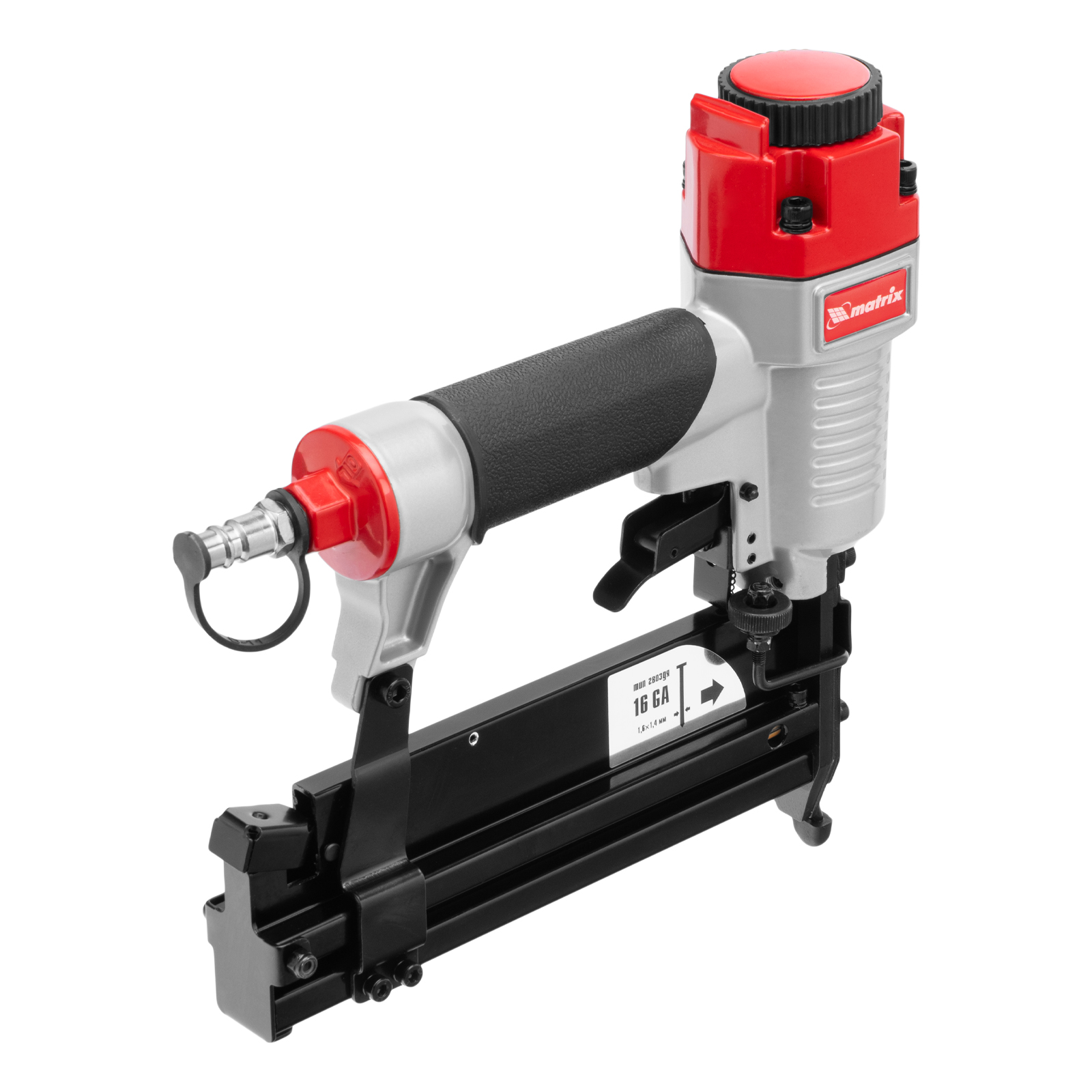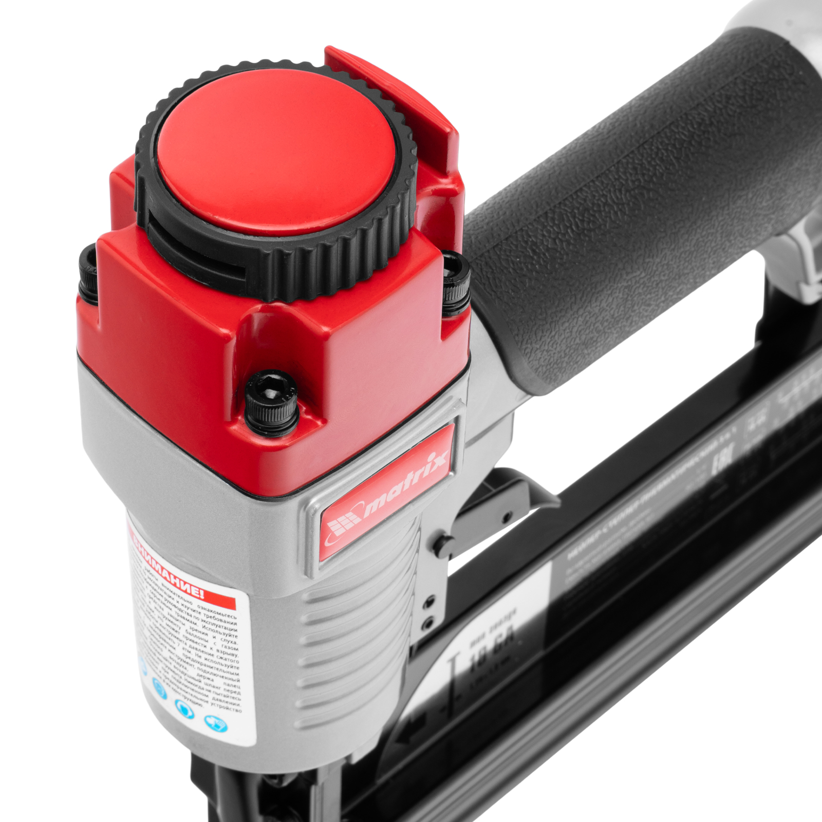 Пневматический нейлер-степлер 3 в 1 Matrix 57427 способен забивать на регулируемую глубину скобы 18 GA и гвозди 18GA и 16GA. Используется для фиксации паркетной доски, фанеры, ДВП, шифера, гипсокартона, ткани и бумаги. Пригодится во время ремонта, а также для сборки мебели и отделочных работ. Расход воздуха составляет 107 л/мин, поэтому нейлер-степлер можно подключать к любому типу компрессоров.