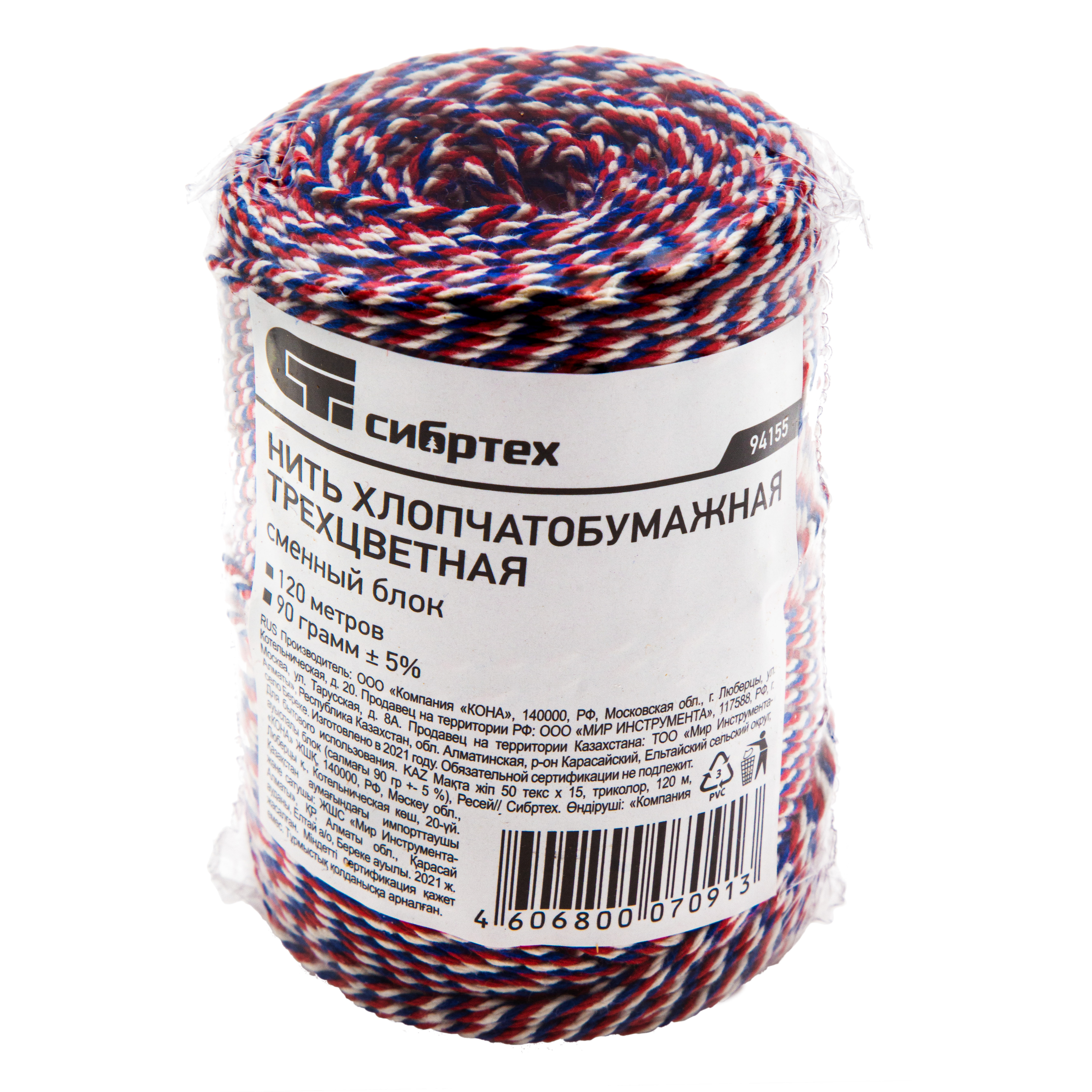 Нить ХБ 50 текс х 15 триколор по 120 м (сменный блок для арт. 94154) применяется для прошивки документов, перевязки, упаковывания или опломбирования различных предметов и оборудования, полезен в банковских, почтовых, архивных организациях, а в быту.