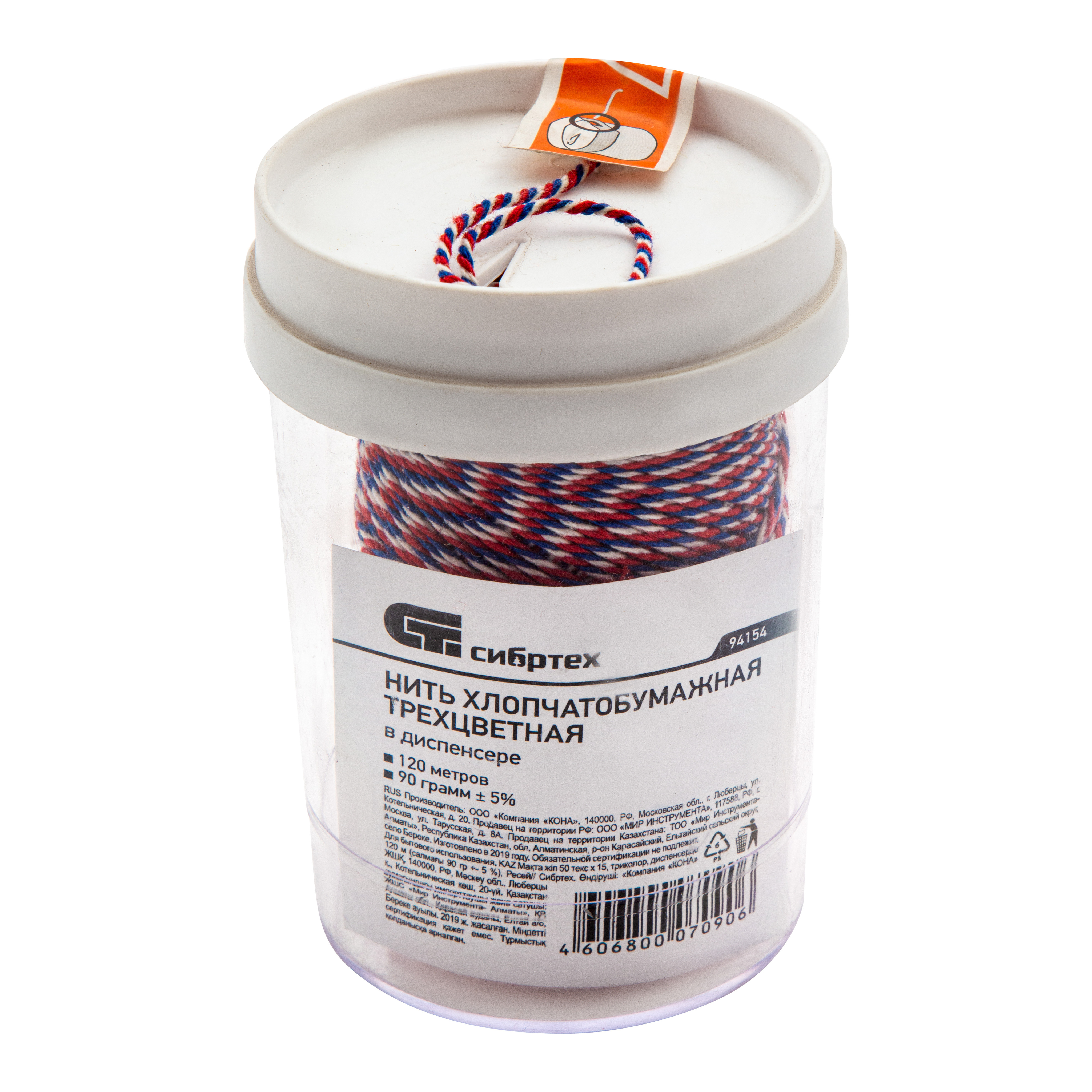 Нить ХБ 50 текс х 15 триколор по 120 м в диспенсере применяется для прошивки документов, перевязки, упаковывания или опломбирования различных предметов и оборудования, полезен в банковских, почтовых, архивных организациях, а в быту.