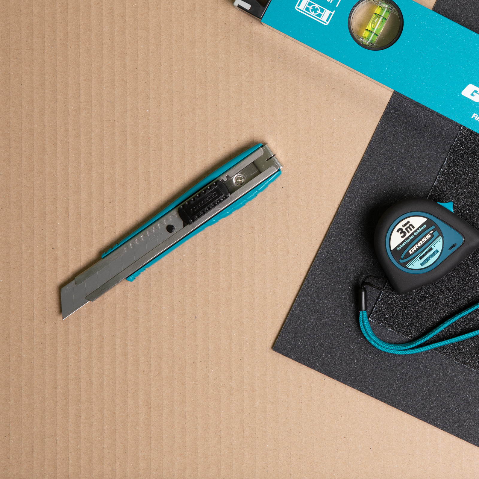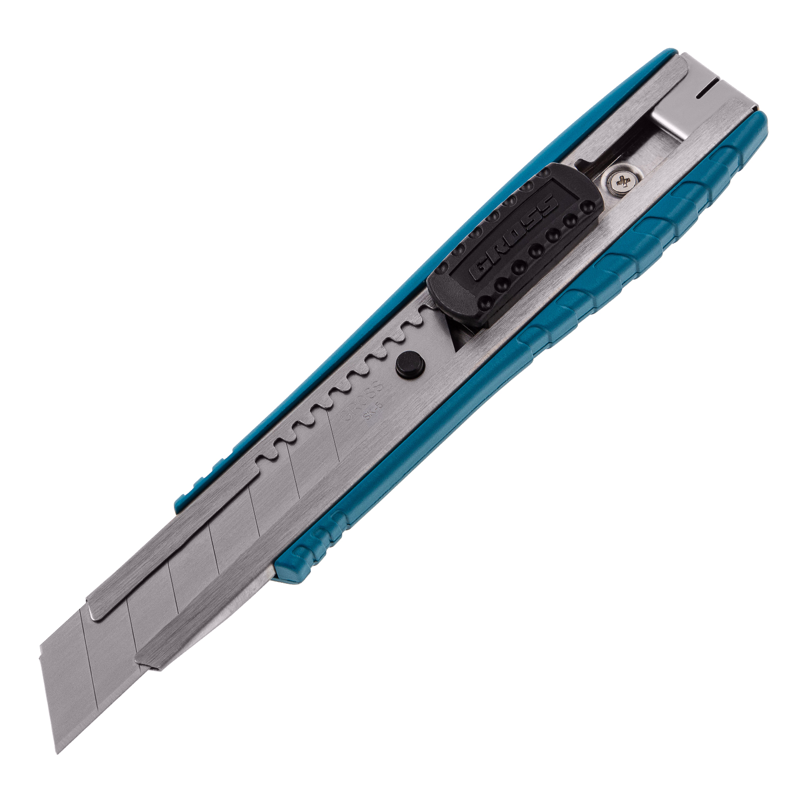 Нож Gross 78897 из стали SK-5, длиной 160 мм, в металлическом корпусе, с выдвижным сегментным лезвием шириной 18 мм, металлической направляющей и клипсой для ремня, — профессиональный инструмент, предназначенный для разрезания линолеума, картона, кожи, обоев и других материалов. Используется при проведении ремонтных и отделочных работ, будет полезен в хозяйстве.