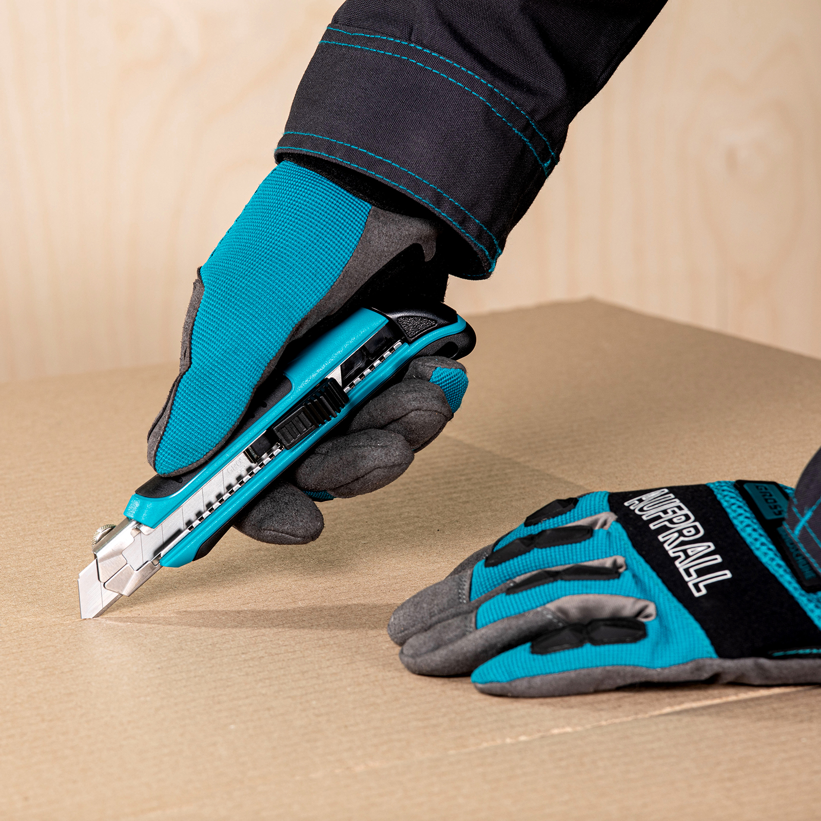 Нож Gross 78893 длиной 170 мм, с обрезиненным ABS-корпусом, выдвижным сегментированным лезвием шириной 18 мм из стали SK-5 и металлической направляющей, с 5 лезвиями, предназначен для профессионального использования в ходе ремонтно-монтажных работ. Пригодится также для решения бытовых задач. Нож легко режет бумагу, картон, кожу, поможет раскроить линолеум или обои. Благодаря металлической направляющей инструмент не сломается даже при работах со значительным усилием.