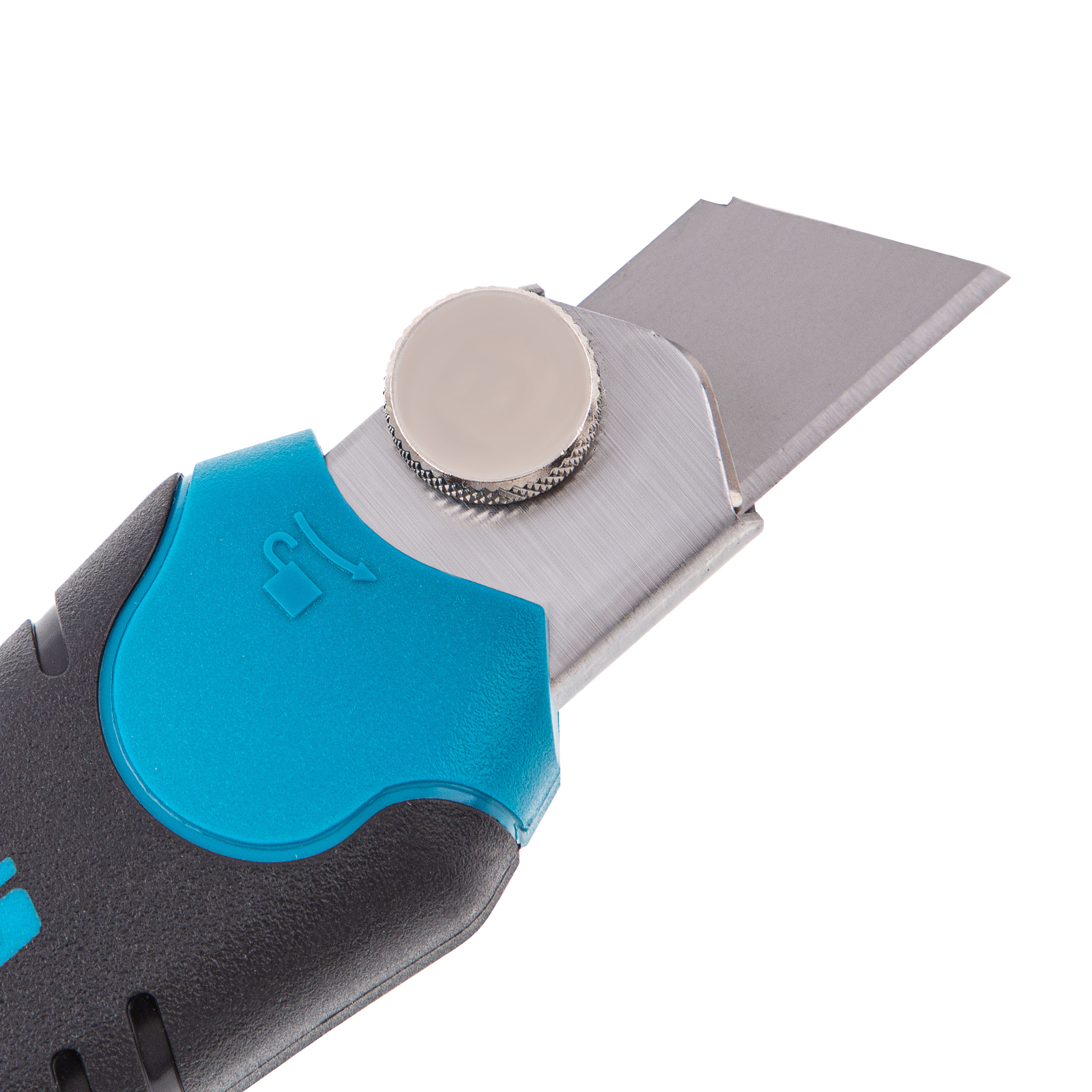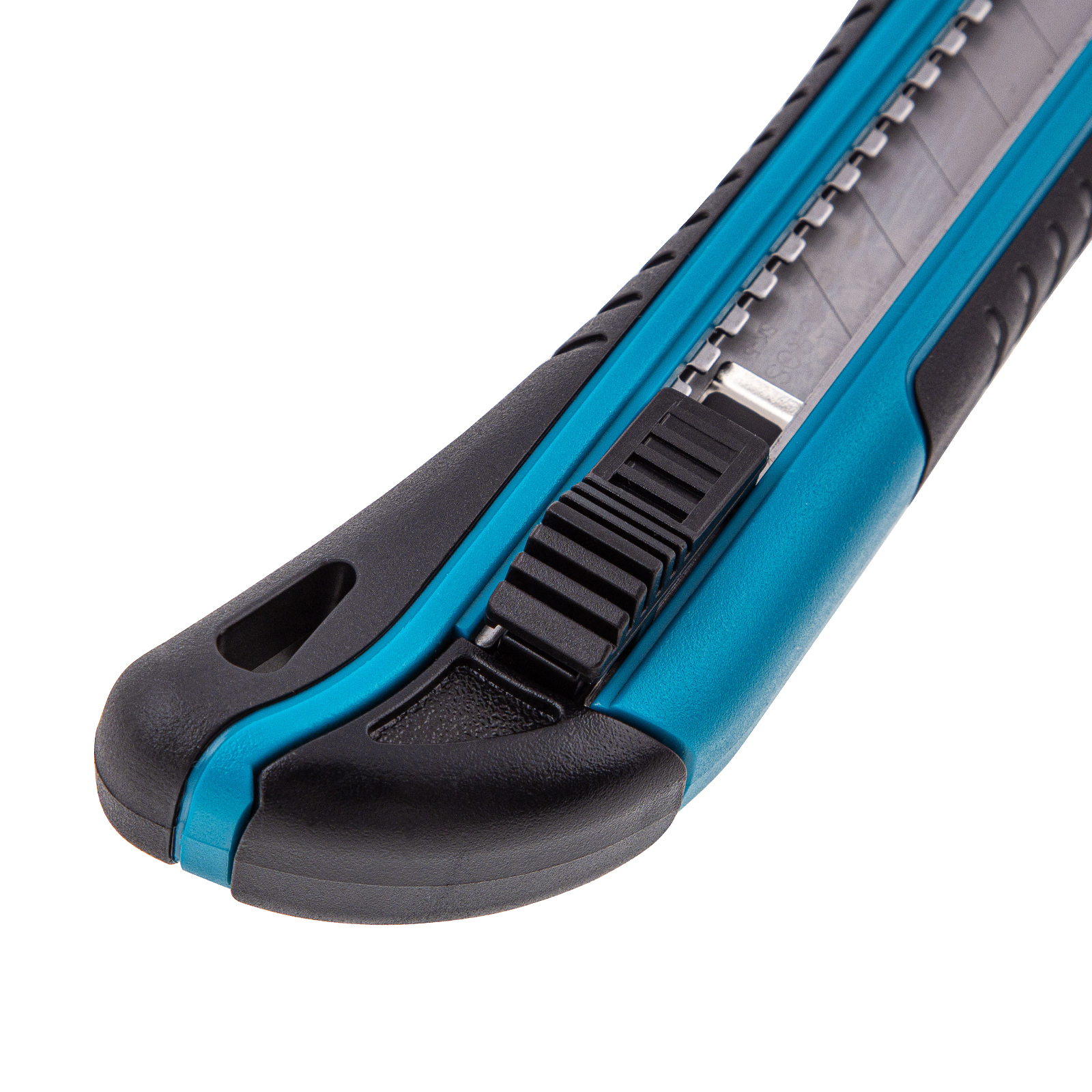 Продуманная конструкция — благодаря рифленому упору для большого пальца лезвие легко выдвигается и задвигается.