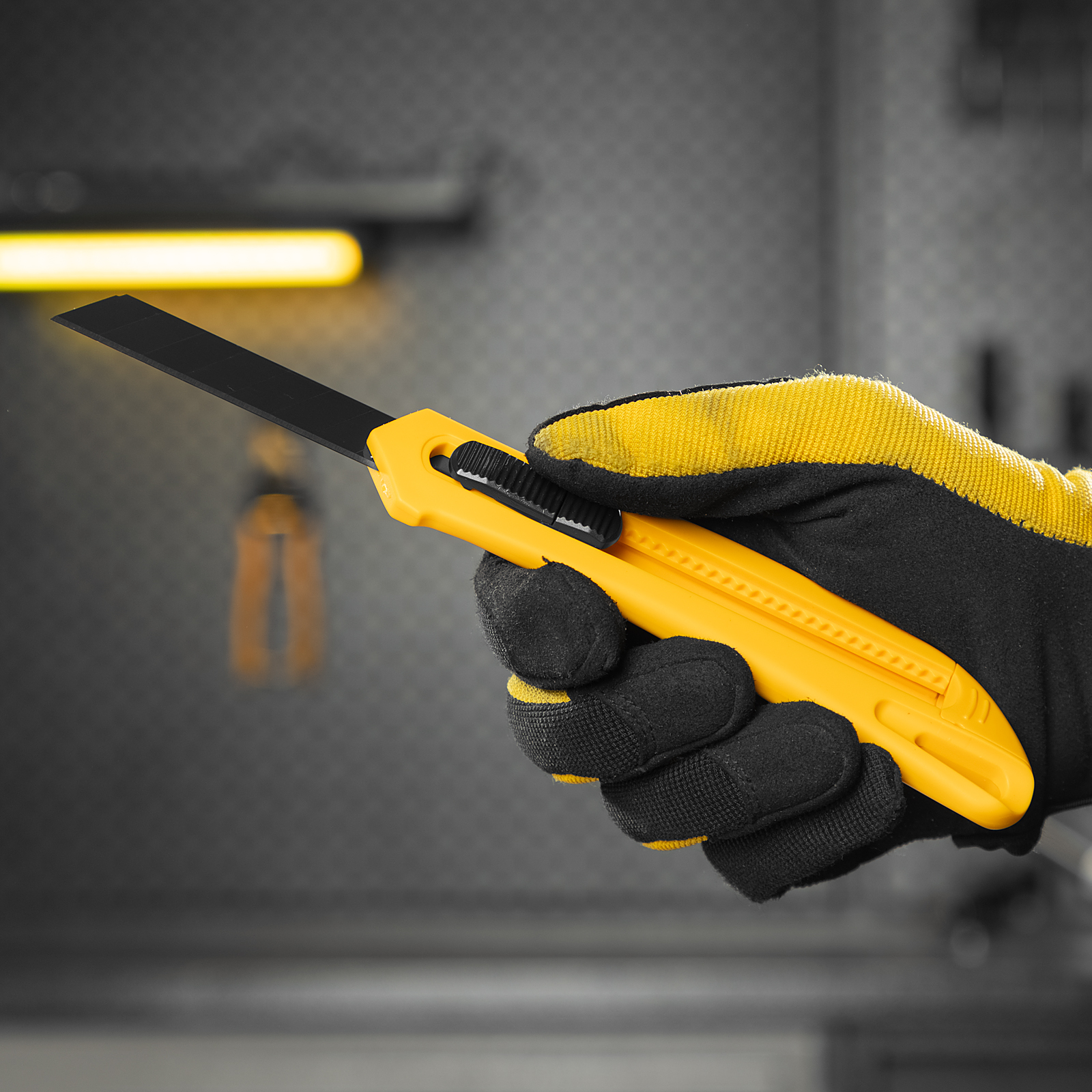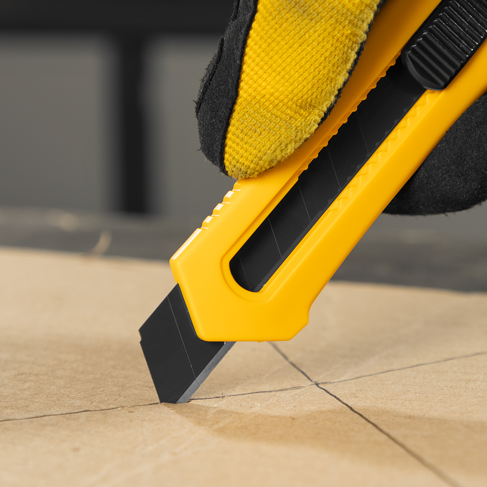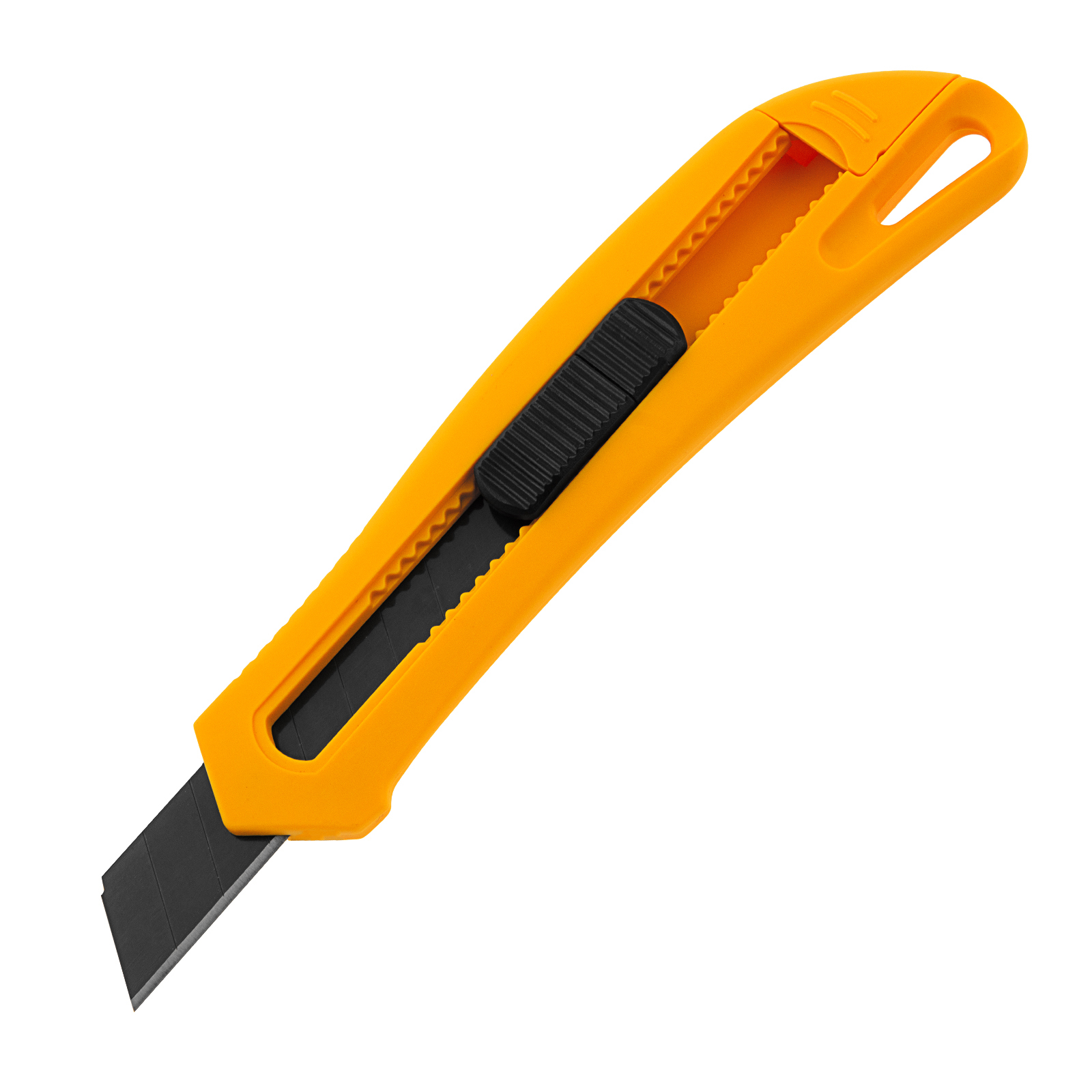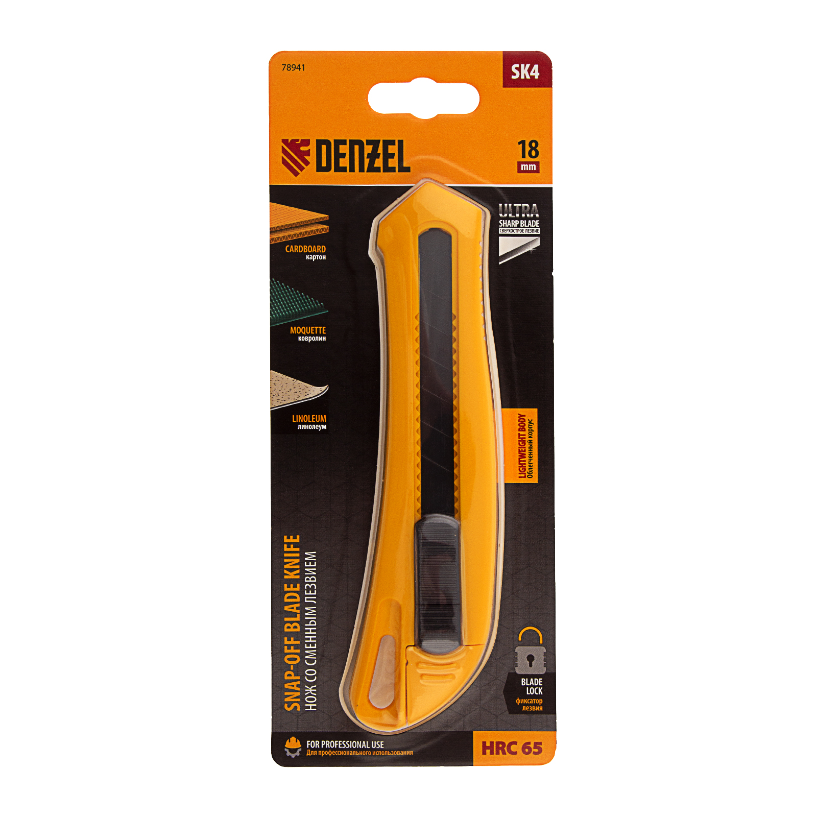 Нож Denzel 78941 в облегченном корпусе, со сменным лезвием шириной 18 мм, изготовленным из стали SK4, оснащен нажимным фиксатором. Сверхострое выдвижное лезвие легко режет линолеум, ковролин, бумагу, обои, картон и другие листовые материалы. Нож рекомендован для профессионального применения, пригодится также в домашнем хозяйстве.