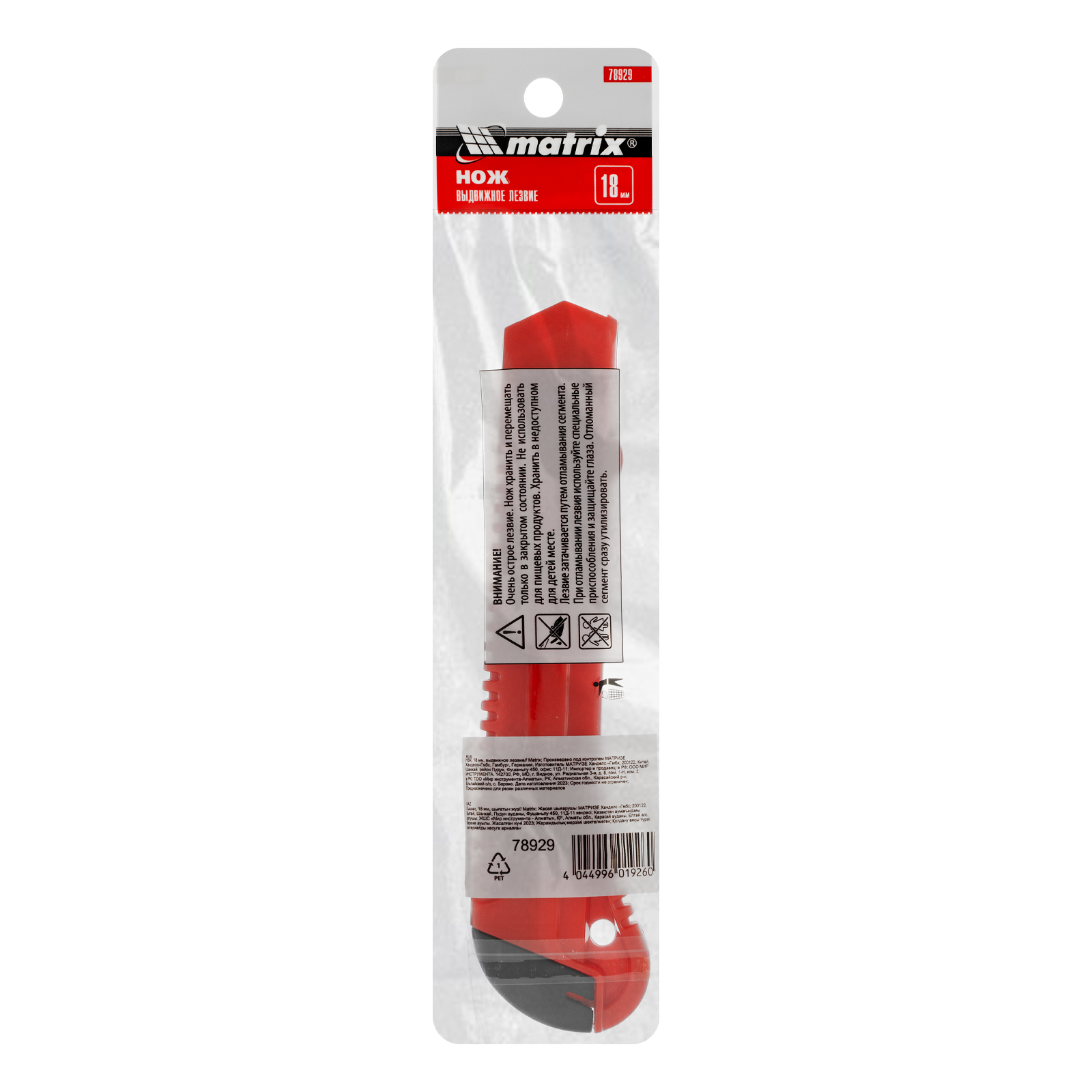 Нож Matrix 78929 с выдвижным лезвием шириной 18 мм позволяет резать бумагу, картон, кожу и другие нетвердые материалы. За счет выдвижной конструкции он удобен и безопасен в использовании. Инструмент применяется в различных сферах: на стройке, в офисе, в домашнем обиходе и частных мастерских.