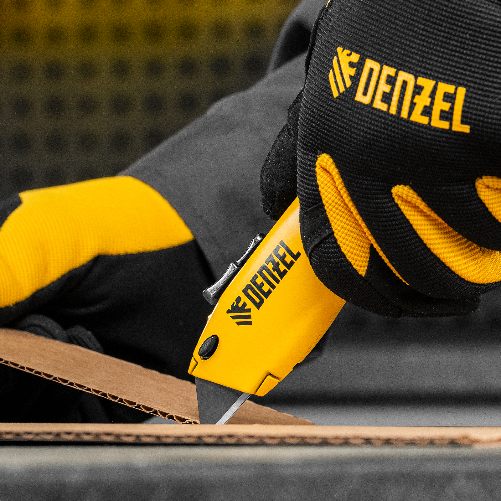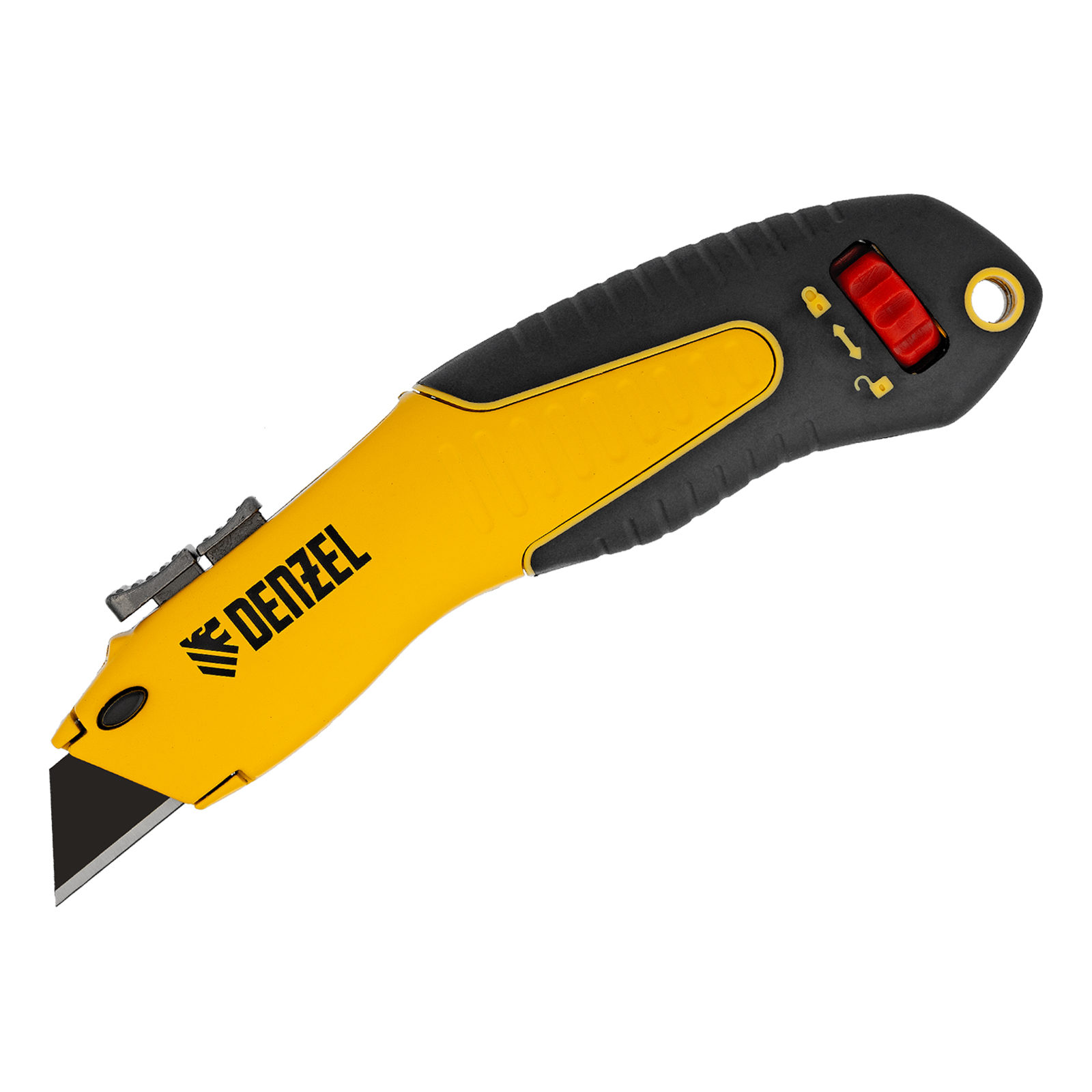 Нож Denzel 78916 выполнен в алюминиевом корпусе, оснащен сменным трапециевидным лезвием шириной 19 мм, изготовленным из стали SK4 по технологии UltraSharp, и торцевым зажимом. Сверхострое выдвижное лезвие легко режет бумагу, картон, кожу и другие нетвердые материалы. Нож станет незаменимым помощником на строительной площадке, на кухне, в офисе.
