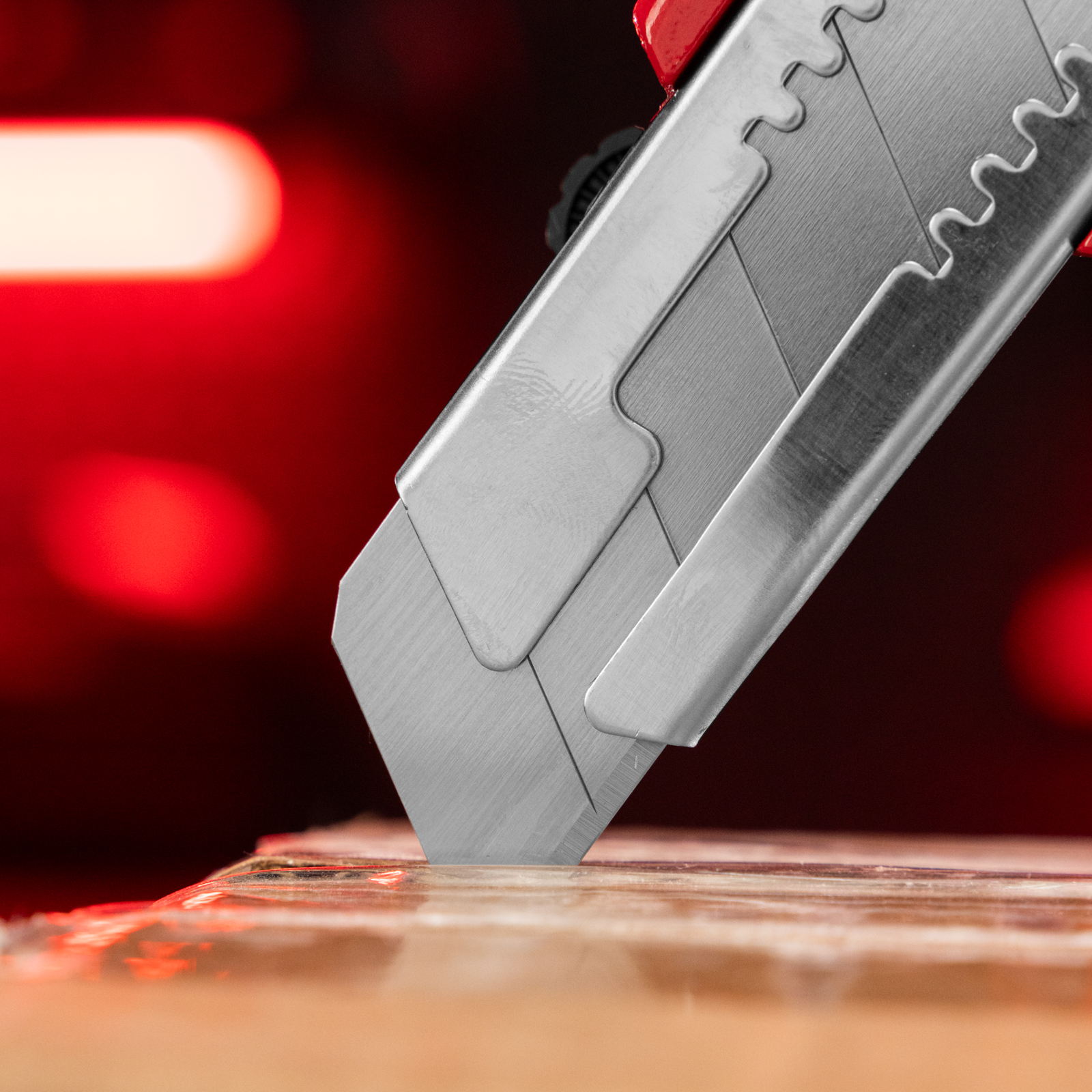 - Высокий ресурс — полотно долго сохраняет режущую способность, затупившийся сегмент можно отломить, и нож снова будет готов к работе.