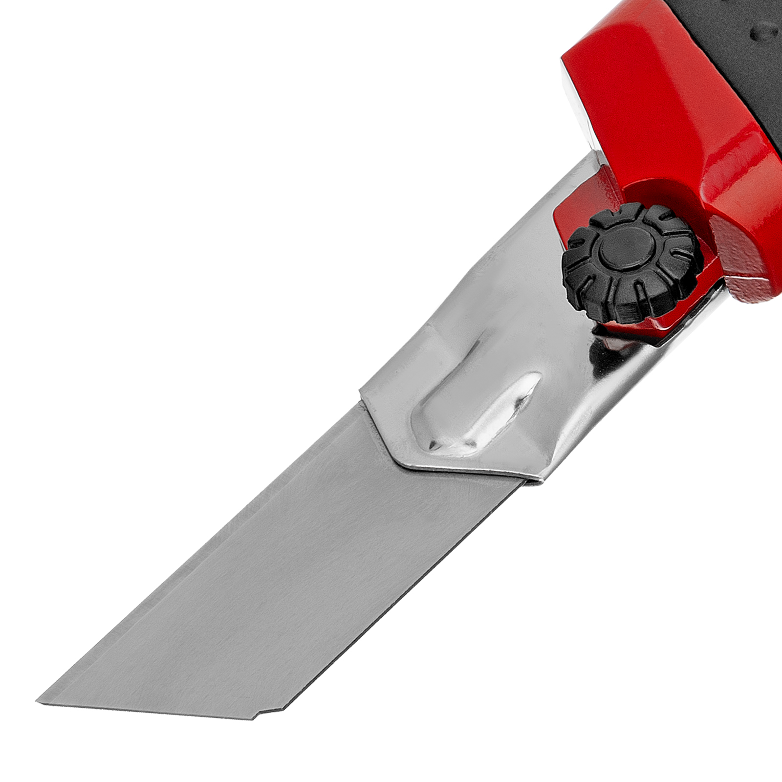 - Надежная конструкция — винтовой фиксатор удерживает лезвие в рабочем положении.