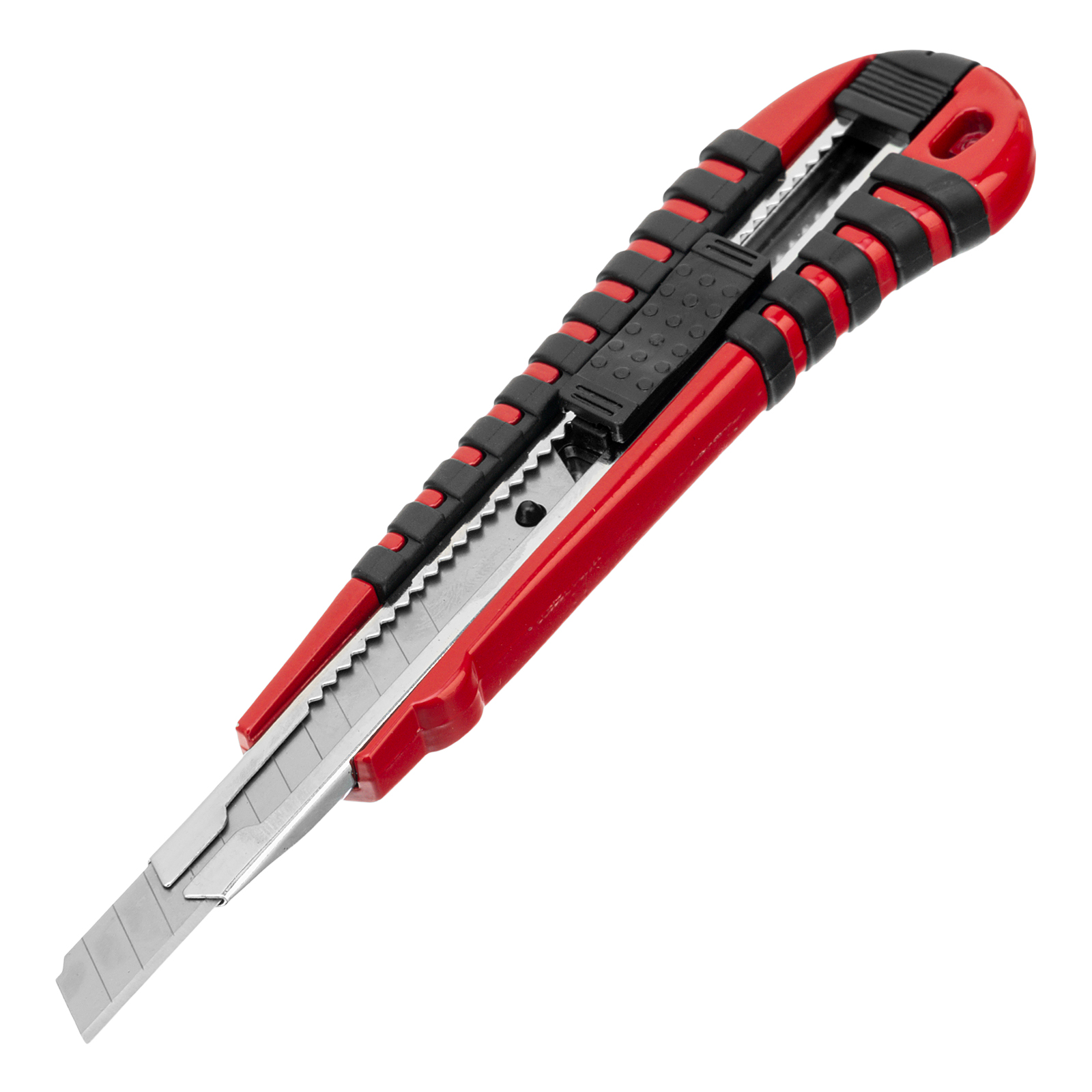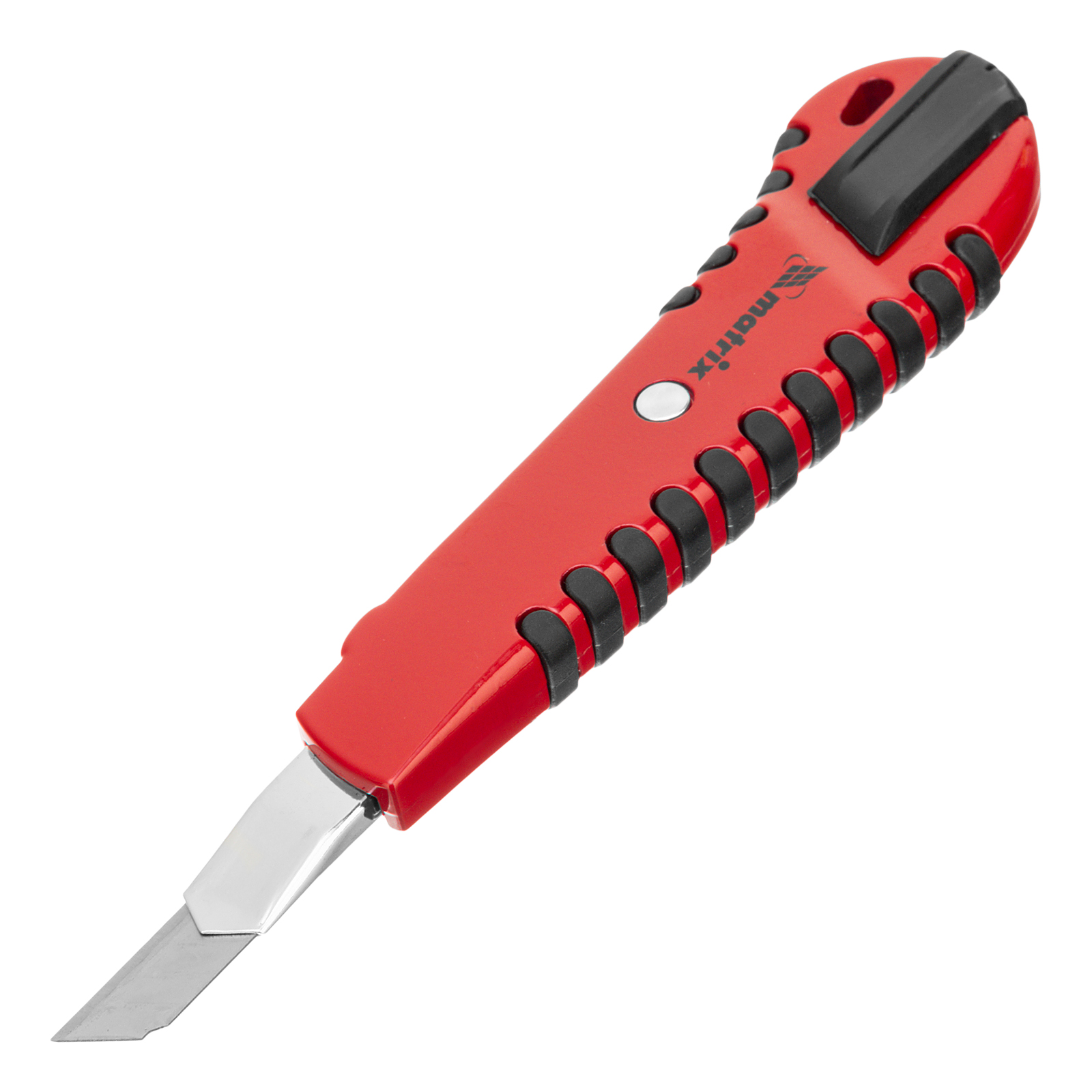 Нож Matrix 78937 с выдвижным лезвием шириной 9 мм, металлической направляющей и эргономичной двухкомпонентной рукояткой пригодится в мастерской, для бытового использования, проведения ремонтных работ, а также для рукоделия. Он с легкостью разрезает бумагу, картон и более плотные материалы, например, кожаные изделия.