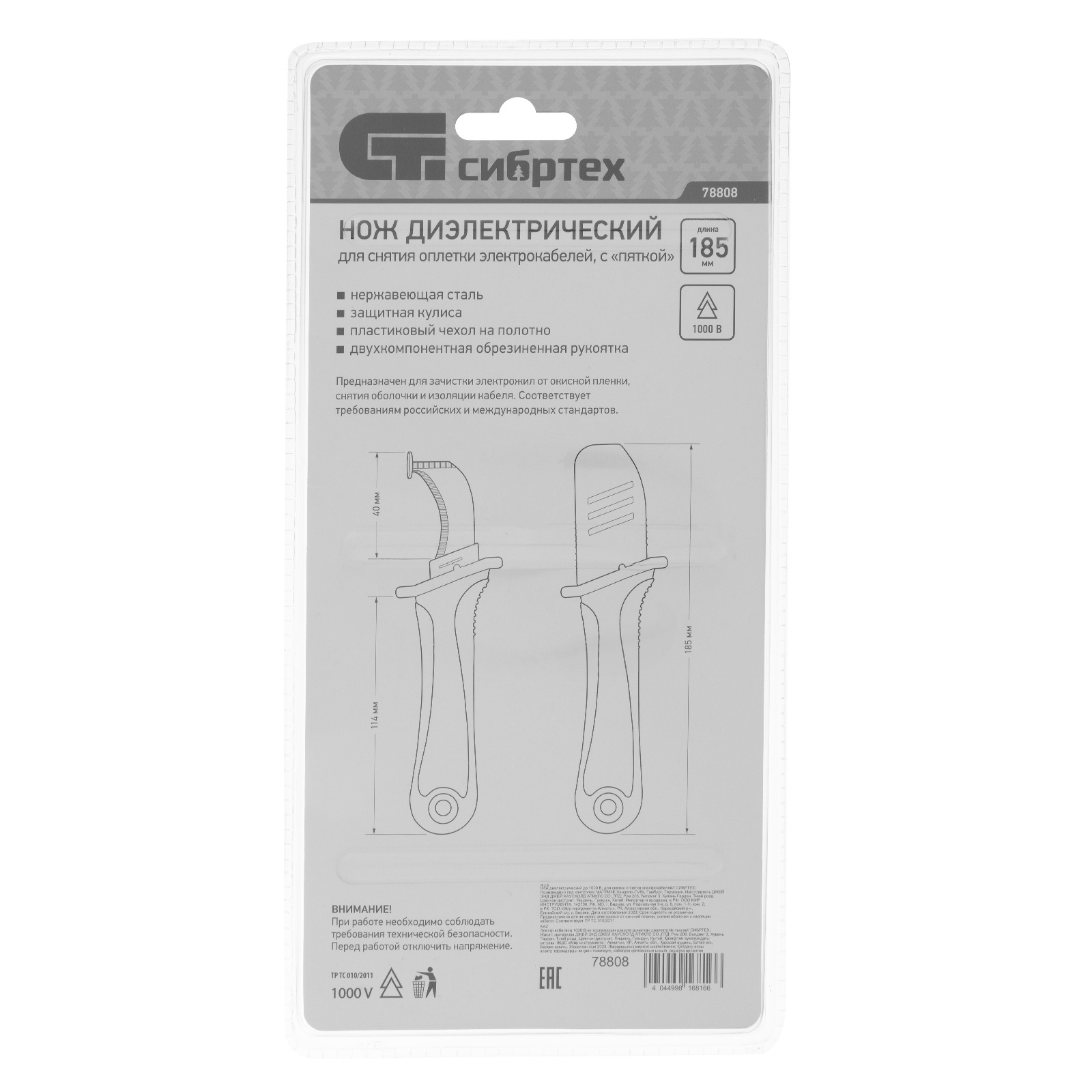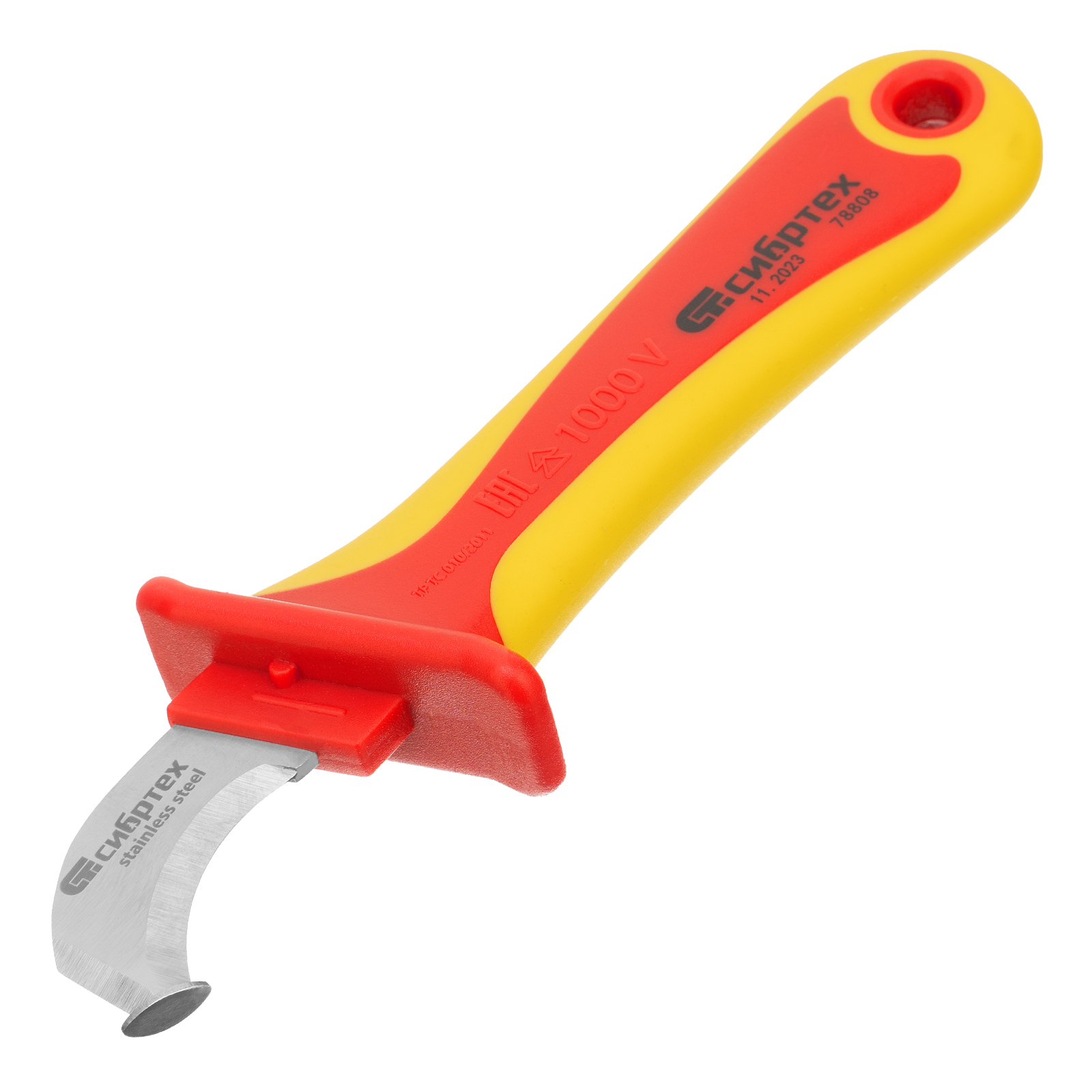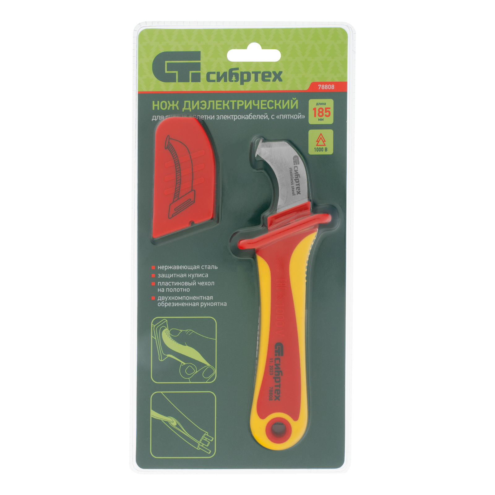 - Высокое качество — нож полностью безопасен и соответствует нормам ГОСТ при проведении работ с электрикой под напряжением до 1000 В.