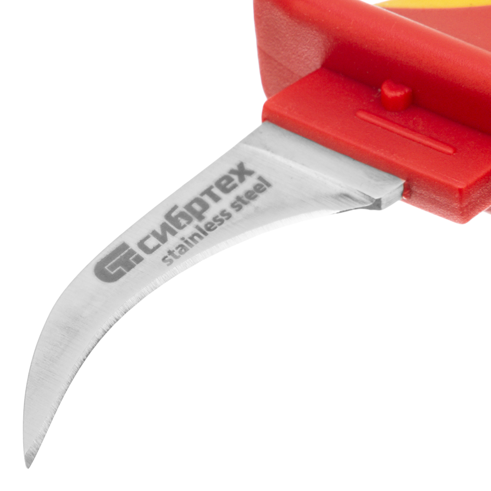 Диэлектрический нож до 1000 В Сибртех 78804 с серповидной рабочей кромкой полотна будет полезен во время электромонтажных работ. С его помощью можно снять изоляцию с кабеля и зачистить электрожилы. Во время использования необходимо соблюдать требования технической безопасности, перед выполнением работ требуется отключить напряжение.