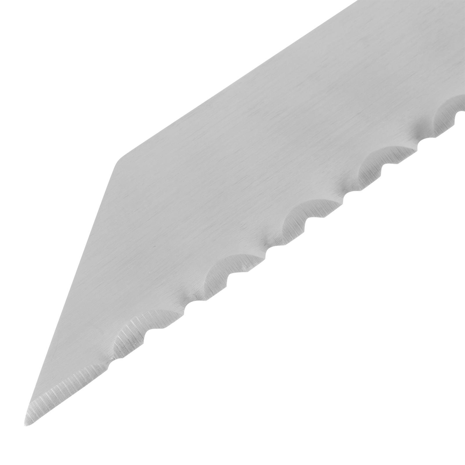 - Обрезиненная рукоятка предотвращает проскальзывание ножа в руке, что значительно повышает удобство работы.