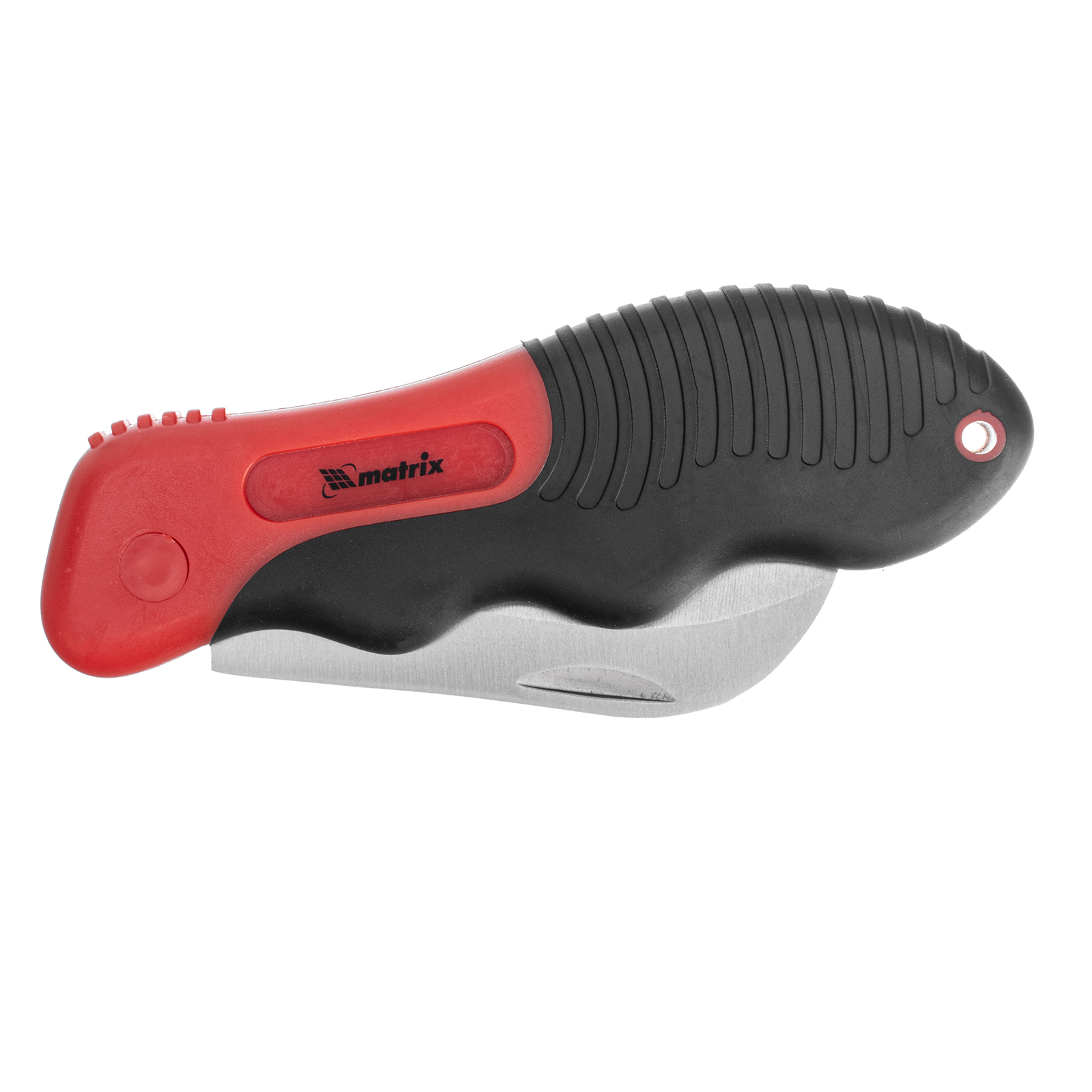 - Удобное хранение и транспортировка — инструмент имеет складную конструкцию, предусмотрено отверстие в рукоятке для подвешивания ножа на крючок или гвоздь.
